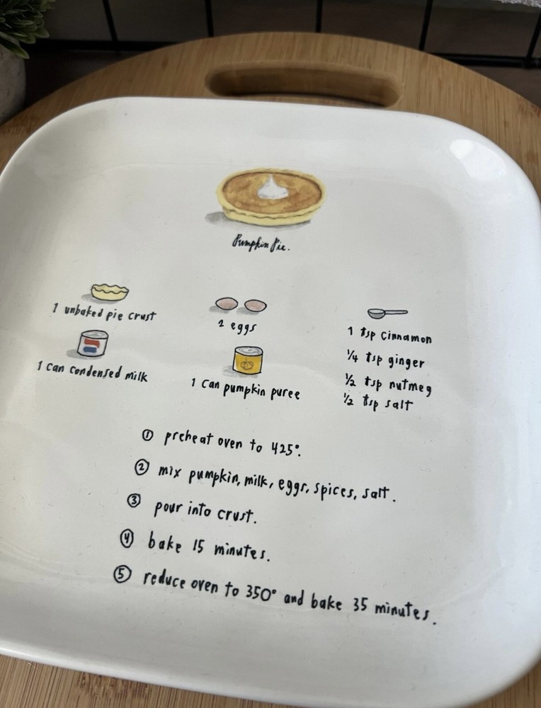 Rae Dunn Ceramic Plate Pumpkin Pie Recipe New Will have professionally wrapped for shipment