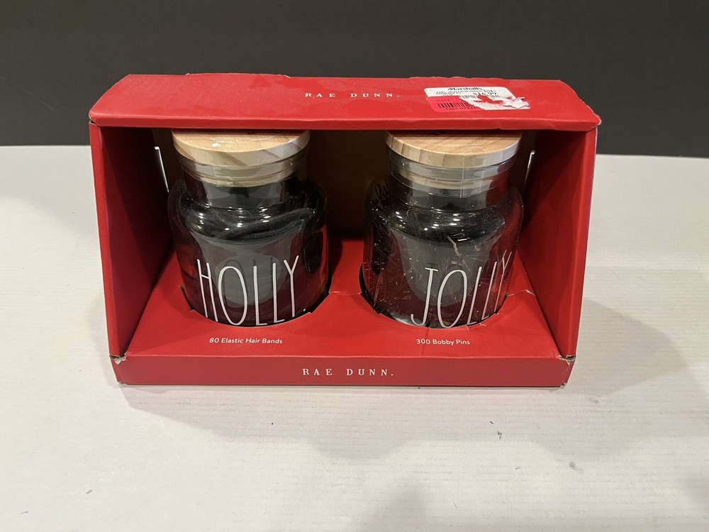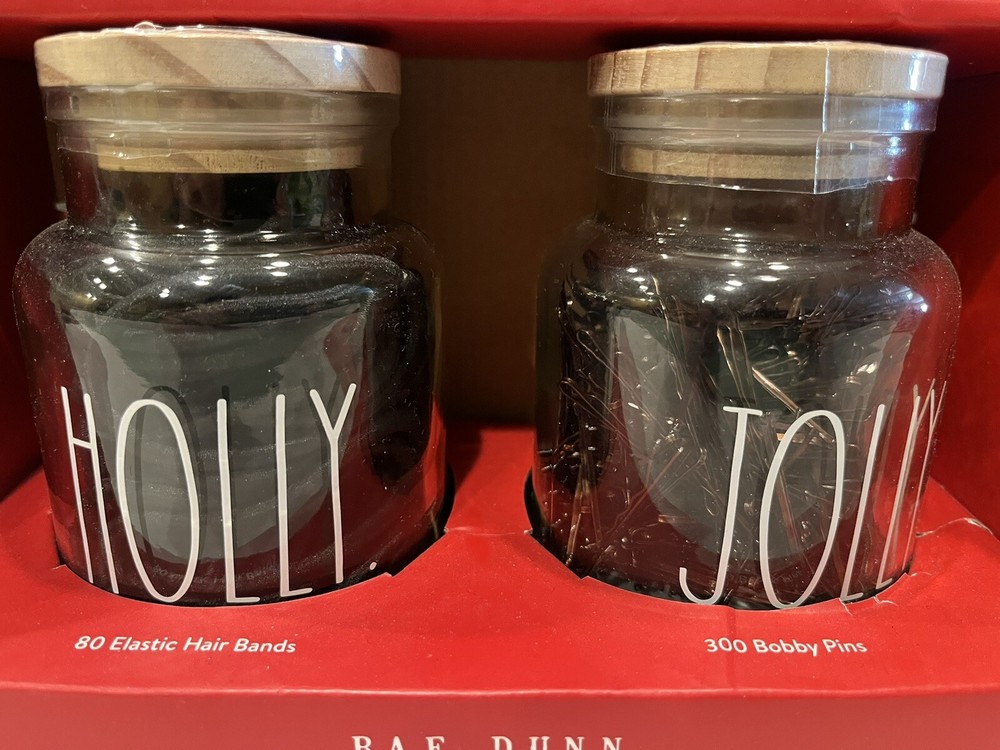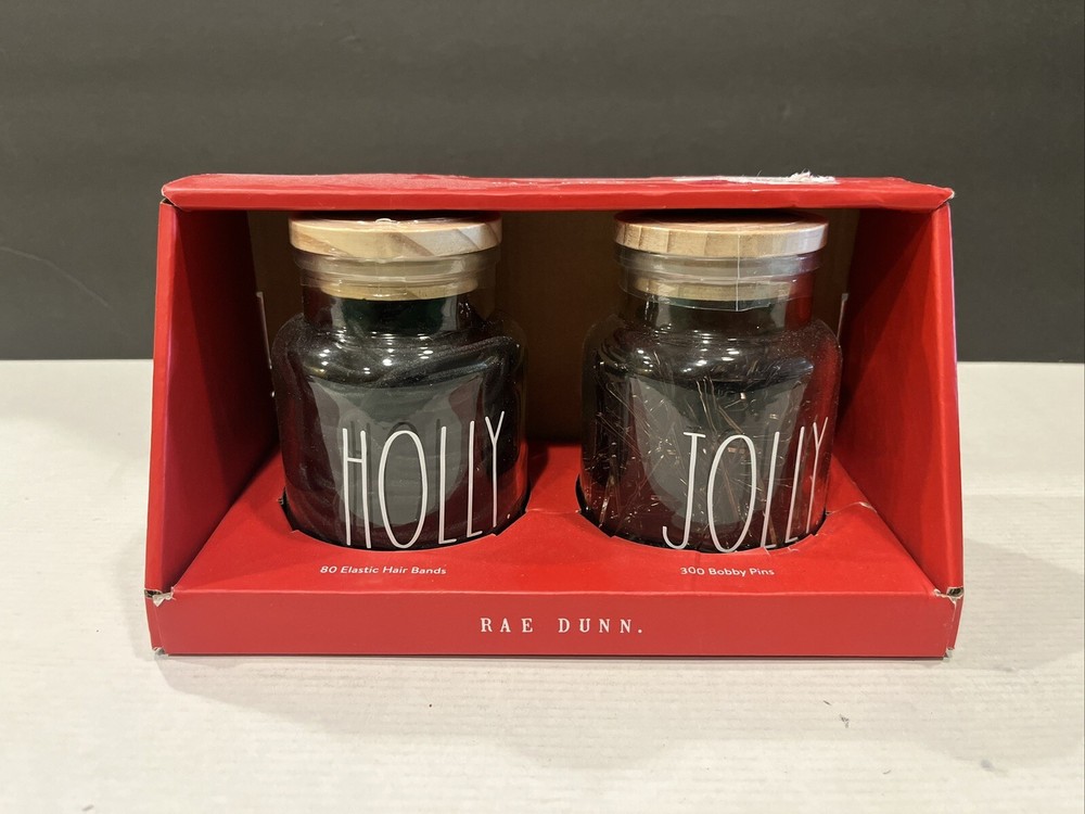 Elevate your holiday hair game with this Rae Dunn Holly Jolly set. Featuring 80 elastic hair bands and 300 bobby pins, you'll have everything you need to create the perfect festive hairstyle. The storage jars are perfect for many other storage uses!