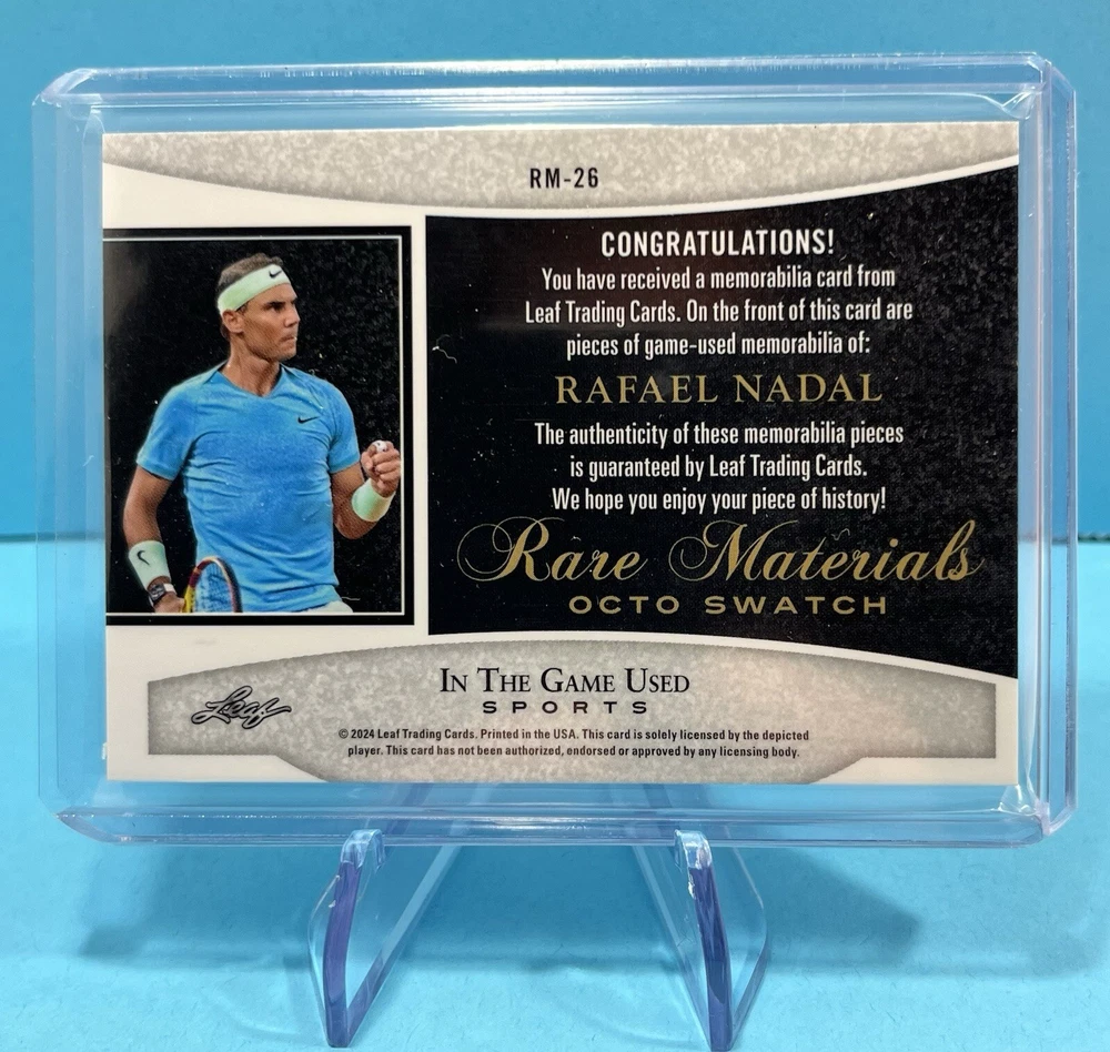 Rafael Nadal 2024 Leaf In The GAME USED Rare Material Octo Swatch SSP # 4/5. Condition is Ungraded. Shipped with USPS First Class.