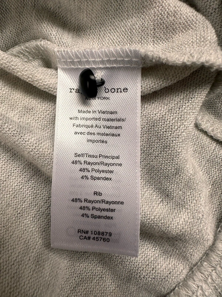 Rag & Bone Bowery Heathered Soft Stretch Turtleneck Size Small Condition: excellent with the exception of a small makeup mark on the back of the collar Brand: Rag & Bone Style: Bowery Heathered Turtleneck with Button up Feature on back Pit to Pit: 23” Length. 21” Soft stretch turtleneck flaunts a timeless heathered finish. • Turtleneck • Long sleeves • Pullover style • Rib-knit trim • Rayon/polyester/spandex • Machine wash • Imported SIZE & FIT • Regular fit • About 23'" from shoulder to hem • Model shown is 5'10" (177cm) wearing a US size Small ABOUT THE BRAND Founded in 2002, Rag & Bone founder Marcus Wainwright combined his British heritage with a downtown New York aesthetic. At the heart of the edgy yet laid-back brand is its focus on quality craftsmanship and attention to detail. The epitome of cool, off-duty style, it's no wonder the signature second-skin denim is favored by many.