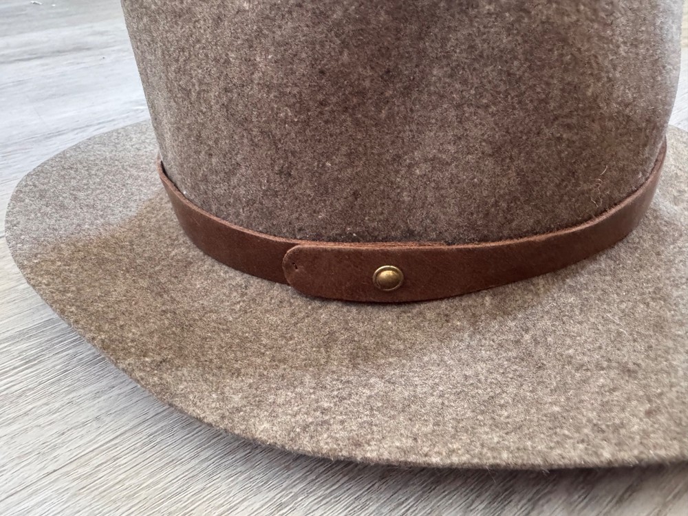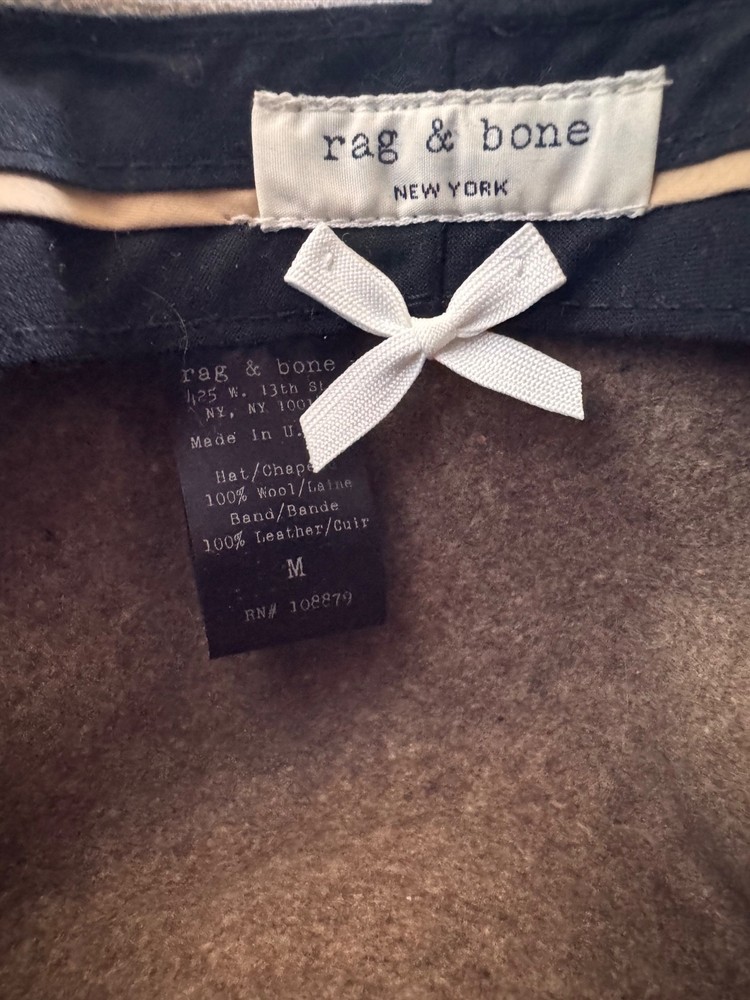 Rag & bone wool felted leather trim fedora hat. Brown and brown leather trim. Size M, measures apx 22”.
