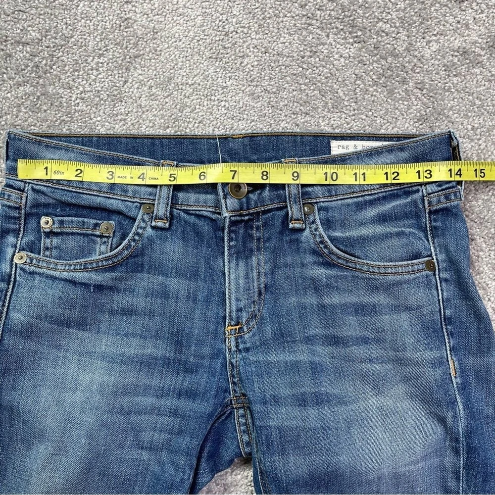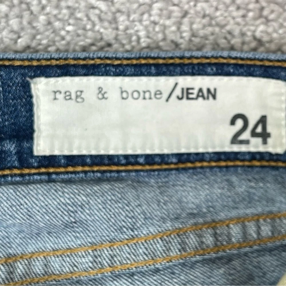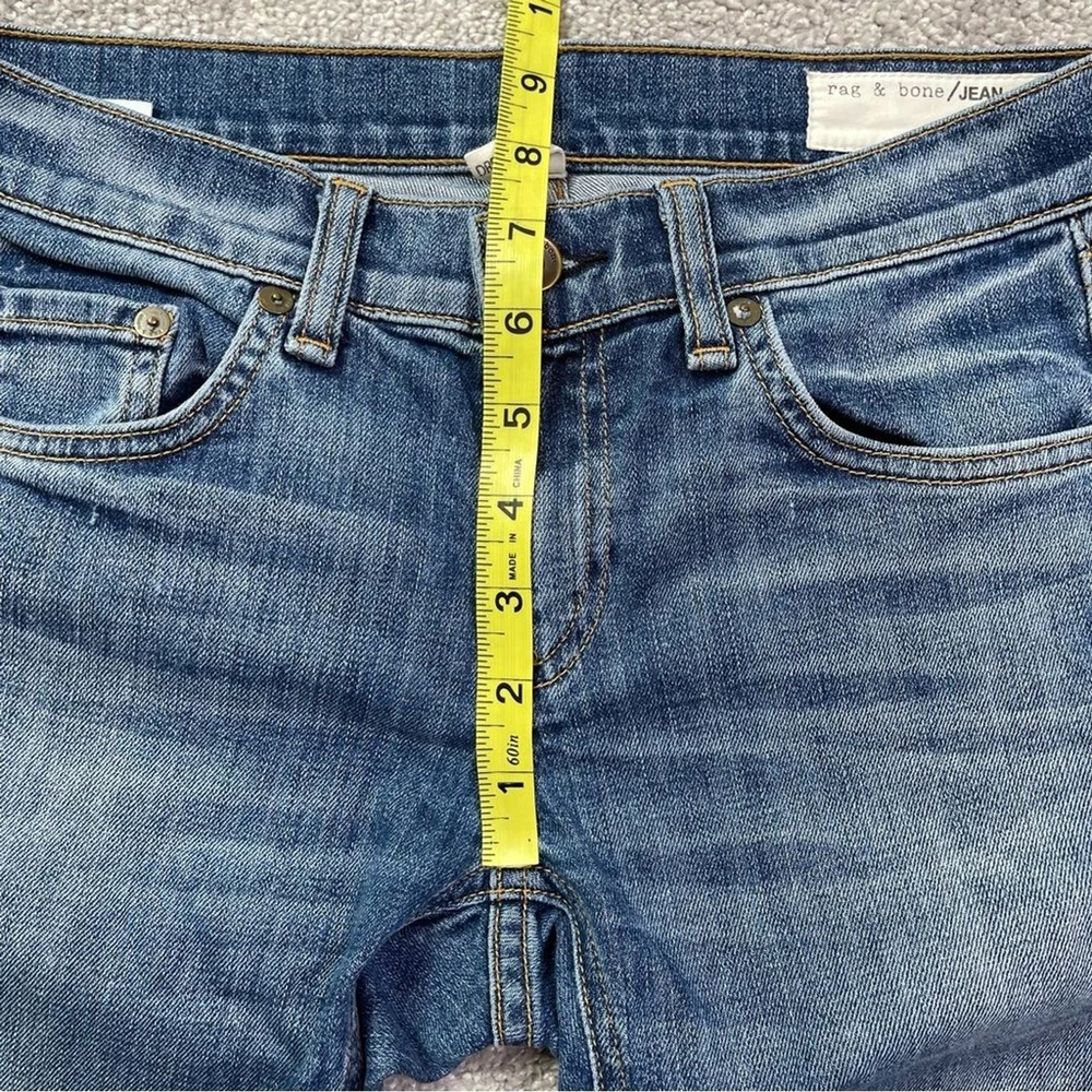 Closure: Zip Color: Blue Country/Region of Manufacture: United States Rise: Low (6.5-8.5 in) Fabric Wash: Dark Department: Women Material: Cotton Blend Personalize: No Theme: Bohemian, City, Preppy, USA Garment Care: Machine Washable Accents: Logo Pocket Type: 5-Pocket Design Size: 24 Season: Fall, Spring, Summer, Winter Product Line: Rag & Bone Dre Size Type: Regular Brand: rag & bone Seller Notes: “In excellent, pre-owned condition with no flaws to note.” Features: Pockets, Stretch Fabric Type: Denim Inseam: 29 in Waist Size: 24 in Handmade: No Model: Rag & Bone Dre Pattern: Solid Fit: Relaxed Style: Skinny Vintage: No Type: Jeans
