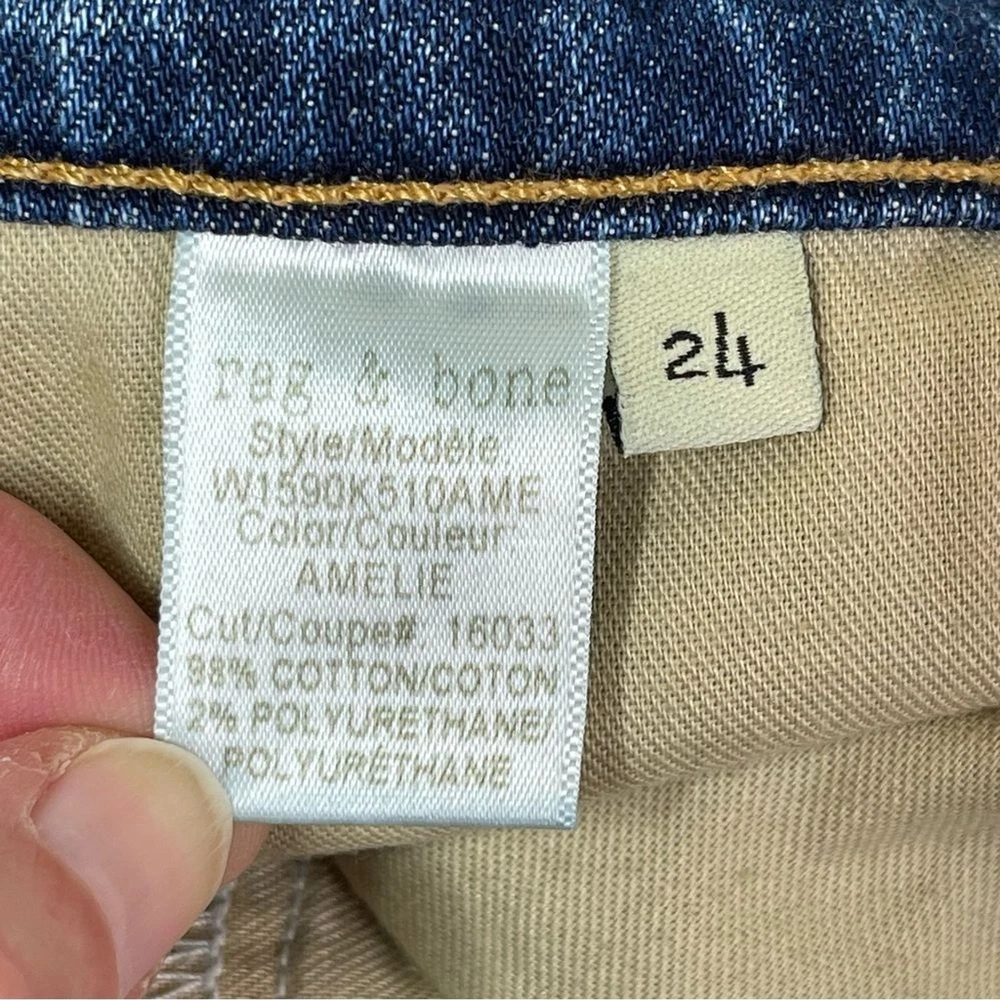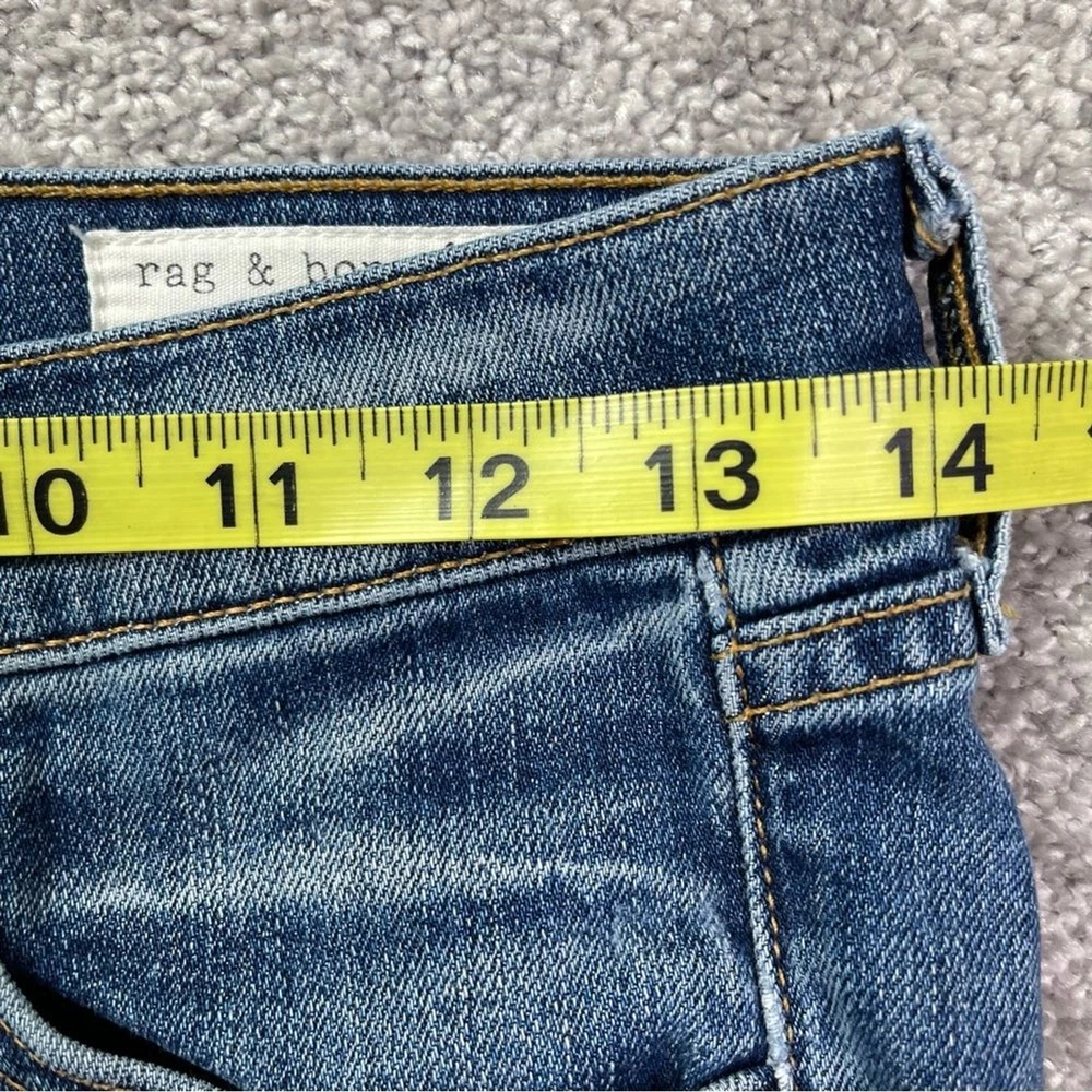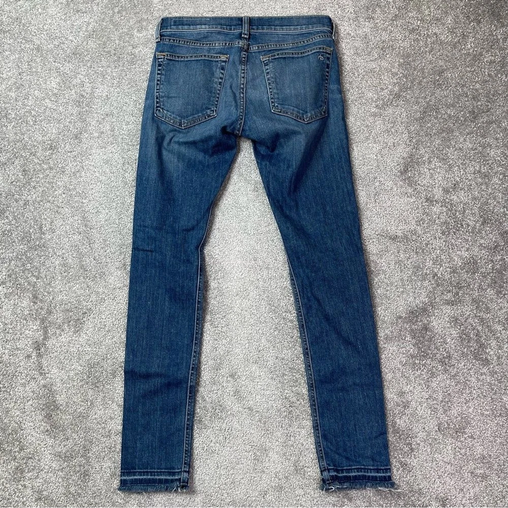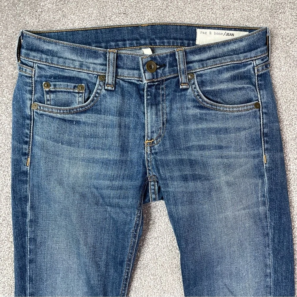 Closure: Zip Color: Blue Country/Region of Manufacture: United States Rise: Low (6.5-8.5 in) Fabric Wash: Dark Department: Women Material: Cotton Blend Personalize: No Theme: Bohemian, City, Preppy, USA Garment Care: Machine Washable Accents: Logo Pocket Type: 5-Pocket Design Size: 24 Season: Fall, Spring, Summer, Winter Product Line: Rag & Bone Dre Size Type: Regular Brand: rag & bone Seller Notes: “In excellent, pre-owned condition with no flaws to note.” Features: Pockets, Stretch Fabric Type: Denim Inseam: 29 in Waist Size: 24 in Handmade: No Model: Rag & Bone Dre Pattern: Solid Fit: Relaxed Style: Skinny Vintage: No Type: Jeans
