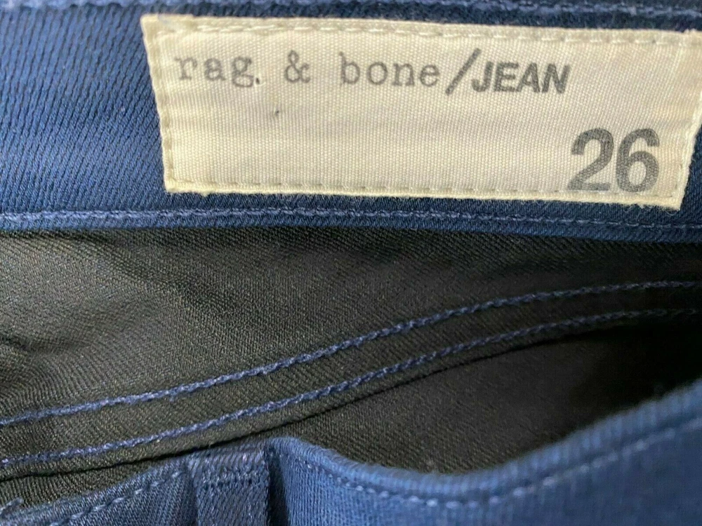 This sale is for a pair of Rag and Bone jeans women's size 26 measures 26 x 29 blue zipper pockets ankles skinny. Please request any additional measurements needed. Please ask all questions before bidding. My items are stored in a smoke free home pet friendly home but please note that they are pre-owned, and I cannot guarantee that they will be 100 % scent free . If you have a problem please message me and I will do my best to work it out with you. Please check out my other items ! Measurements Waist- 26 inches Hip- 13.5 inches not stretched side seam to side seam at end of fly Rise- 7/5 inches Back rise - 13 inches Inseam- 29 inches out seam - 37 inches Leg Opening- 3.5 inches