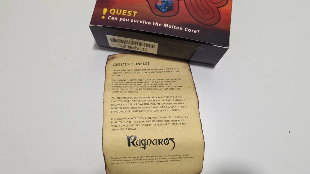 Ragnar Os Cereal Box - Extremely rare collectors item - Blizzard Entertainment. Promotional item sent out to Heroes of the Storm content creators, was never sold officially. Super limited item.
