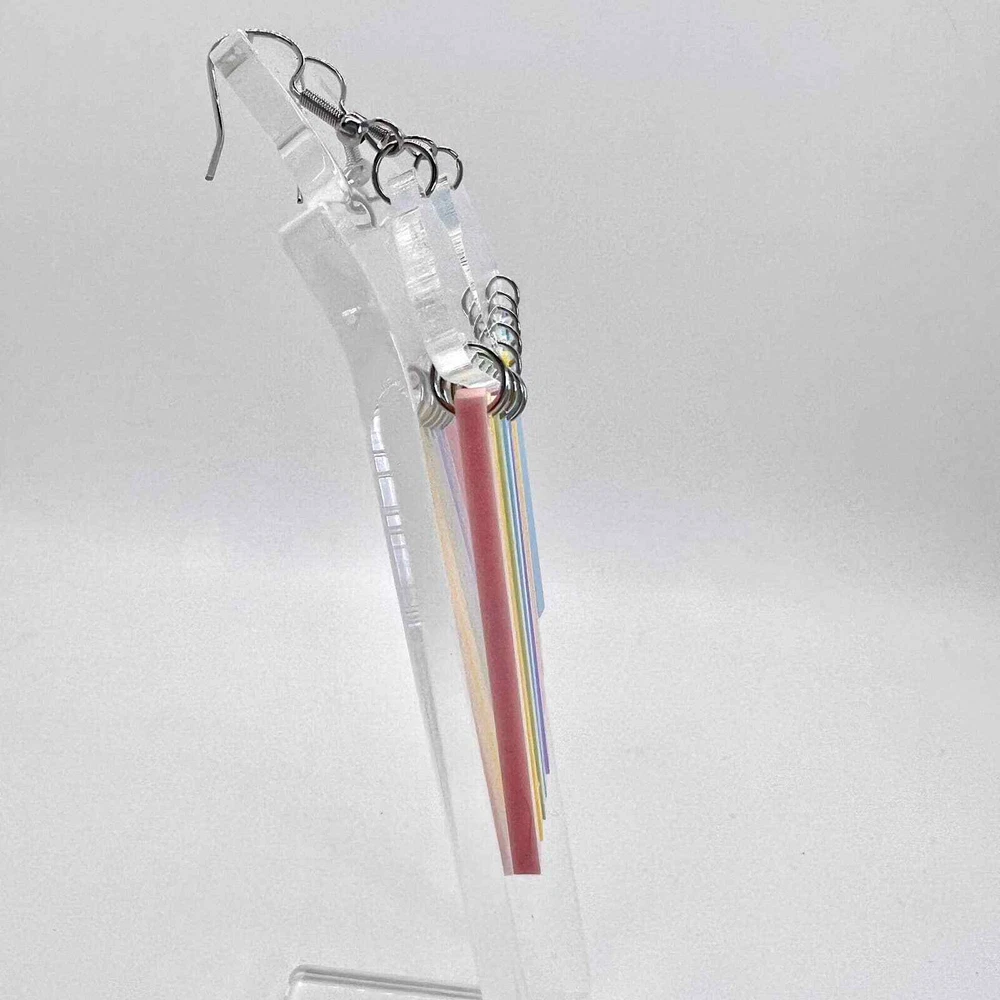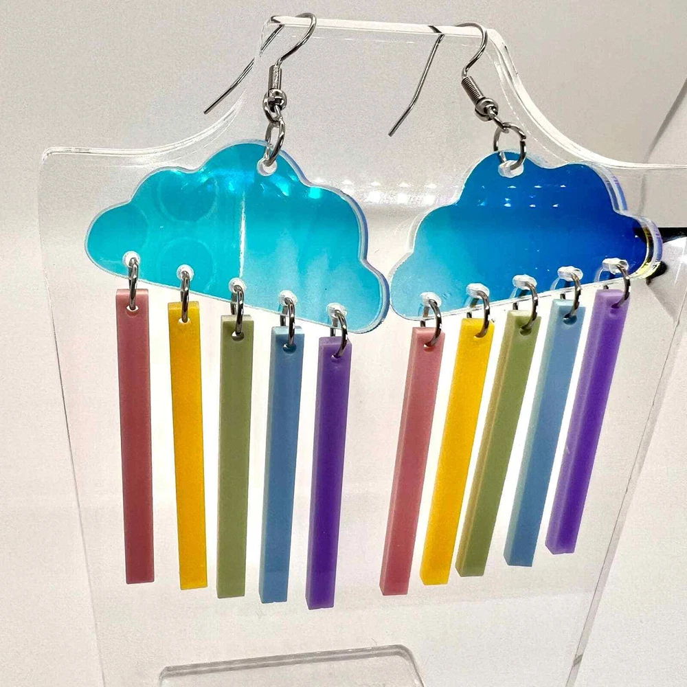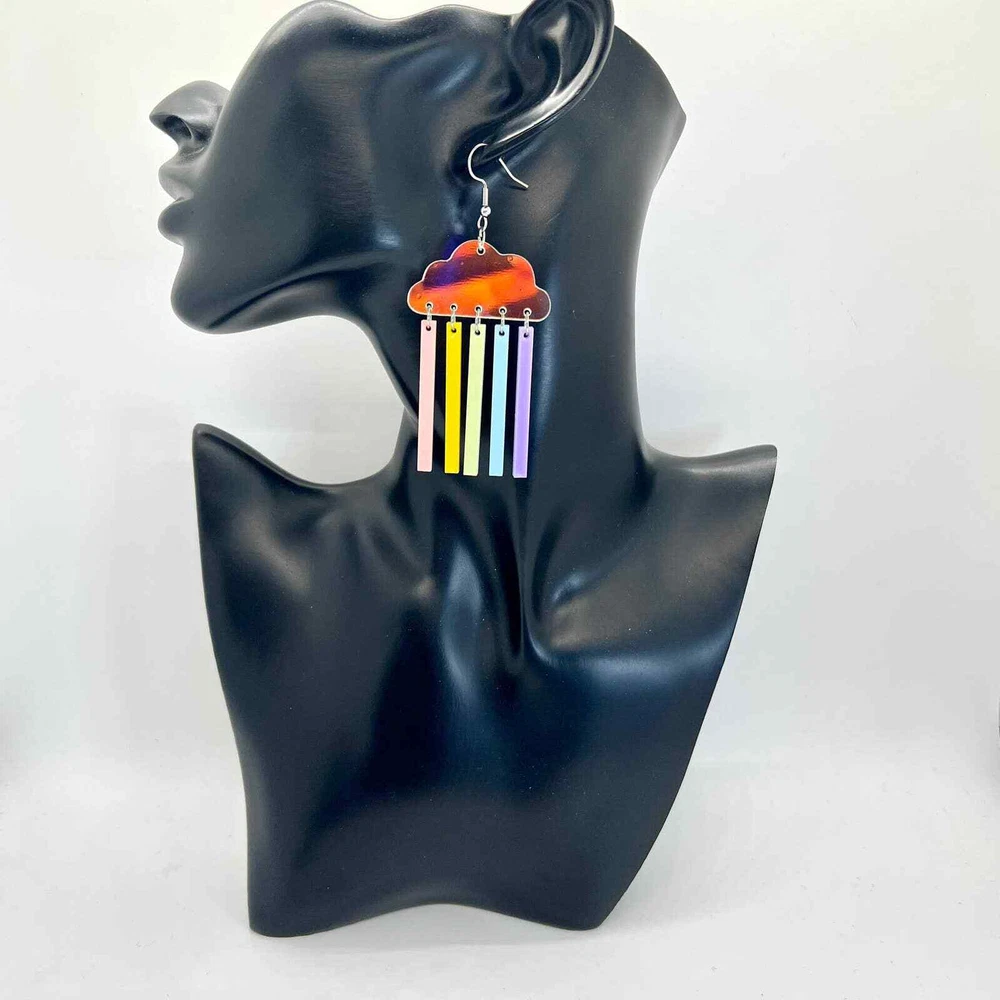 These earrings are made of acrylic with metal hooks. Clip-on hooks are available upon request during checkout. All earrings are handmade and ship within 1-3 days of purchase.