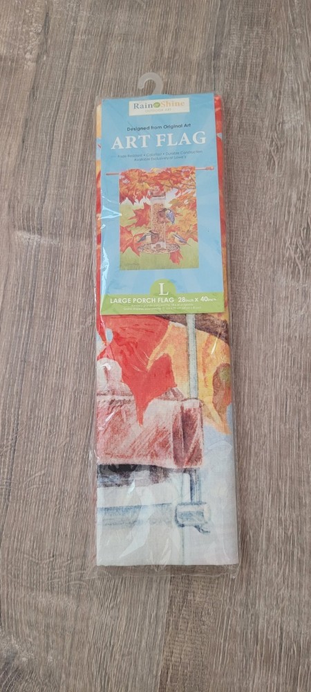 Show off your love for fall with this Rain or Shine double-sided porch flag. Measuring 28" x 40", this flag features a colorful design of nuthatches and is made with fade-resistant, colorfast materials. Perfect for Thanksgiving or any fall occasion, this flag is sure to brighten up your outdoor space. MX3