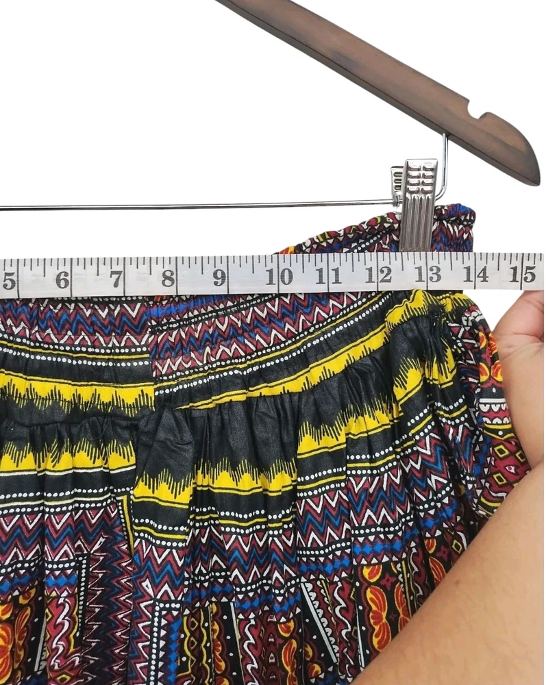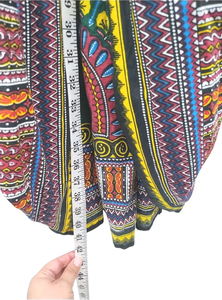 Size: One Size Style: Maxi Season: Fall, Spring, Summer Rise: High Type: Skirt Color: Multicolor Size Type: Regular Features: Bubble Hem Occasion: Casual, Travel, Workwear Personalize: No Material: Cotton Theme: Bohemian, Festival, Hippie, Aztec, africano Closure: Pull On Skirt Length: Long Garment Care: Hand Wash Only Character: Hippie Brand: Rainbow Vintage: No Department: Women Handmade: No