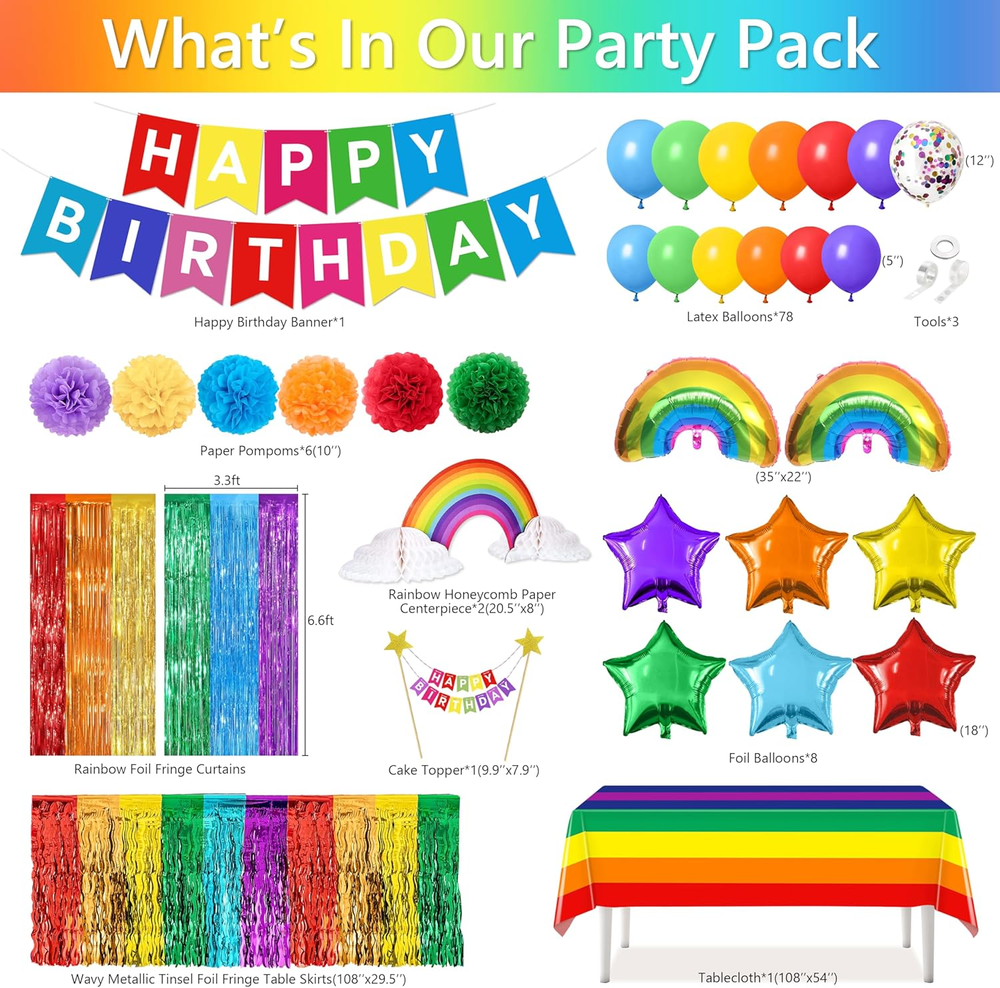 Rainbow Birthday Decorations, 104Pcs Rainbow Party Supplies for Boys and Girls, Colorful Streamers Party Decors Set, Birthday Party Backdrop Upgrade your daily routine with Rainbow Birthday Decorations, 104Pcs Rainbow Party Supplies for Boys and Girls, Colorful Streamers Party Decors Set, Birthday Party Backdrop — premium build for reliable performance and long-lasting value. Enjoy fast handling, friendly support, and a risk-free purchase backed by easy returns. Trusted seller with excellent feedback Popular item — often sells out quickly 30-day returns, no questions asked Key Benefits Feel the quality: durable materials and clean finish Save time: quick setup and easy everyday use Peace of mind: hassle-free support via eBay Messages Smart value: excellent price–performance for home, office, hobby, or professional use Item Specifics Color Red, Orange, Yellow, Green, Blue, Purple Pattern Rainbow Product Dimensions 1 x 1 x 2 inches Material Tinsel, Cardboard, Aluminum Foil, Latex Item Weight 1.94 pounds Theme Rainbow Manufacturer recommended age 20 years and up Occasion Birthday Included Components function(f) {var _np=(window.P._namespace("DetailPageProductOverviewTemplatesJava"));if(_np.guardFatal){_np.guardFatal(f)(_np);}else{f(_np);}}(function(P) { P.when('A').execute(function(A){ A.on('a:truncate:po-attribute-truncate-2:updated', function(data) { var isTruncated = !data.truncateInstance.getIfTextFits(); var seeMoreElement = document.getElementById('po-attribute-see-more-id-2'); if(seeMoreElement) { seeMoreElement.style.display = isTruncated ? '' : 'none'; } }) }); })); Banner, Cake Topper, foil fringe curtains, tablecloth, honeycomb centerpieces, latex balloons, aluminum balloons, paper flowers See more Description Rainbow Birthday Party Decorations: Our rainbow party decorations include 1 pack of red orange yellow and green blue purple foil fringe curtains, 1 happy birthday banner, 1 happy birthday cake topper, 2 rainbow cloud honeycomb centerpieces, 1 rainbow tablecloth, 6 paper flowers, 78 latex balloons(white, red, yellow, blue, green, violet, orange, colorful sequins), 8 colorful pentagram aluminum balloons, 2 rainbow aluminum balloons and 3 balloon assembly tools Cute Rainbow Design: Rainbow birthday party decoration are mainly rainbows with colorful colors, classic rainbows and cloud shapes, as if the rainbow is really right beside you. The conspicuous rainbow decoration can be seen from a distance, attracting people's attention. Such vibrant and colorful rainbow decorations will make your party bright and interesting, leaving a deep impression on your guests Premium Material: These rainbow foil fringe curtains and table skirts are made of high-quality shiny tinsel. They are lightweight and fringe curtains, with no odor, and no fading, harmless to children and pets. Happy birthday banner, cake topper, and honeycomb centerpiece are all made of quality cardboard with clear printing and superior quality. Balloons are crafted of premium aluminum foil or strong latex, the color is more full and not easy to explode Easy to Use: Each fringe curtain and rainbow wave-shaped table skirt comes with self-adhesive tape on the top, just peel off the tape and then stick to the top of a wall, window, table, door, or wherever you want to decorate. Use the included tool to make a beautiful rainbow balloons garland, it will make a perfect celebration party backdrop when paired with the foil fringe curtain and table skirt Multiple Occasions: Great rainbow party decorations set is suitable for most occasions, such as birthday party, children's party, rainbow theme party, unicorn party, baby shower, bridal shower, weddings and so on, make your party attractive and eye catching, give you a happy moment. Also the perfect birthday gift for girls, boys, adults, teenagers, friends, family, and more Product description 1.0 inches x 1.0 inches x 2.0 inches. Weight: 1.94 lb Package Includes 1× Rainbow Birthday Decorations, 104Pcs Rainbow Party Supplies for Boys and Girls, Colorful Streamers Party Decors Set, Birthday Party Backdrop User manual (if included) Invoice by email (VAT shown on request) Shipping & Returns Fast handling and dispatch from our warehouse Tracking provided for parcel shipments 30-day returns according to eBay listing settings Why Buy From Us? Top-rated customer experience Secure checkout through eBay Reliable packaging — arrives ready to use Limited availability on popular variants Don’t wait — click Buy It Now to secure your Rainbow Birthday Decorations, 104Pcs Rainbow Party Supplies for Boys and Girls, Colorful Streamers Party Decors Set, Birthday Party Backdrop today.