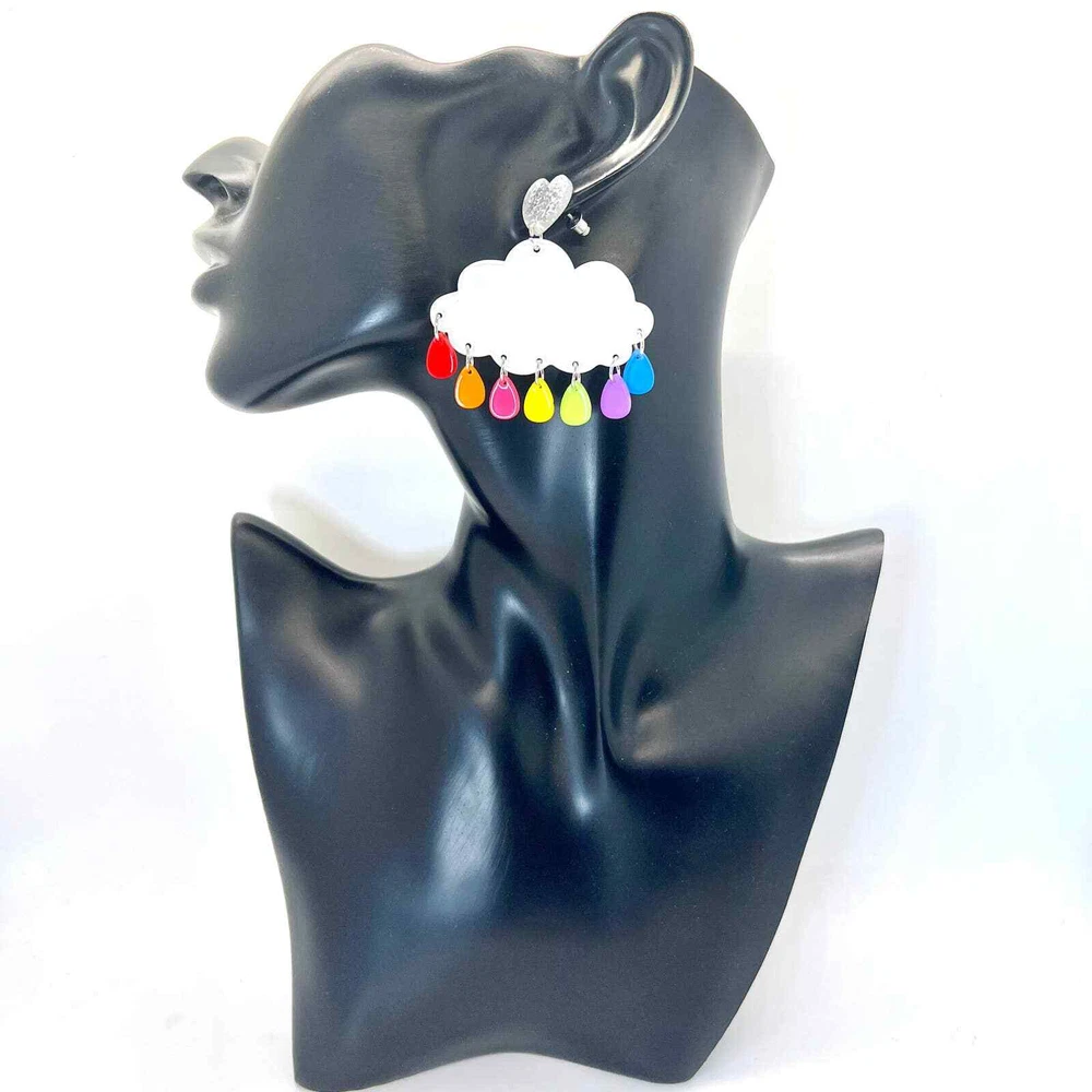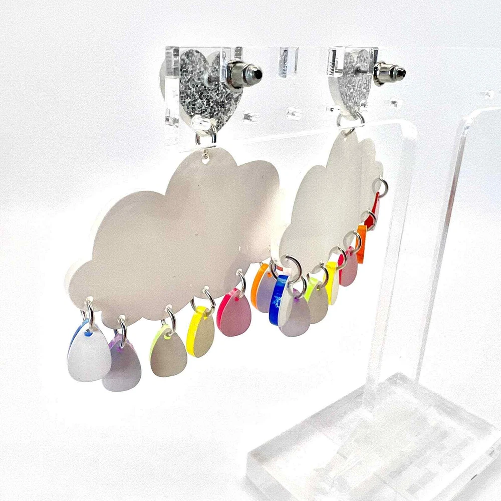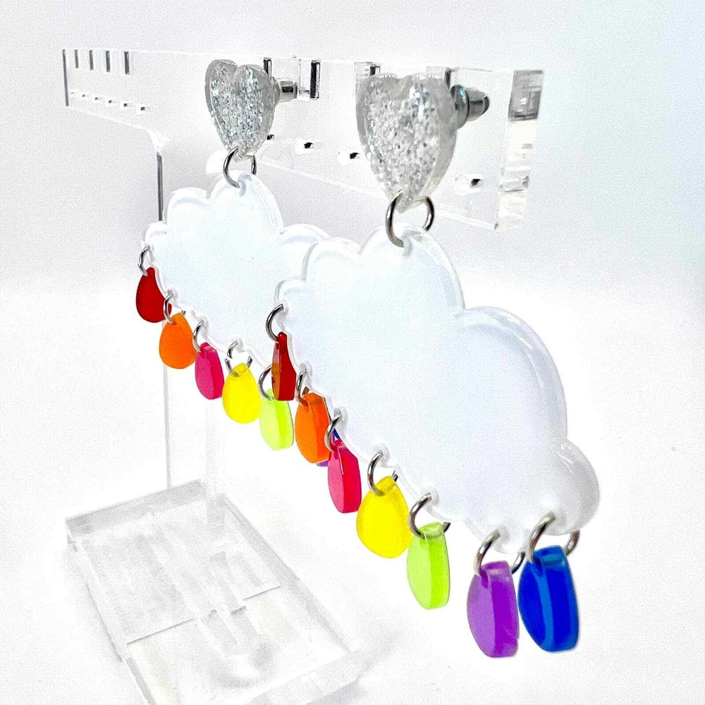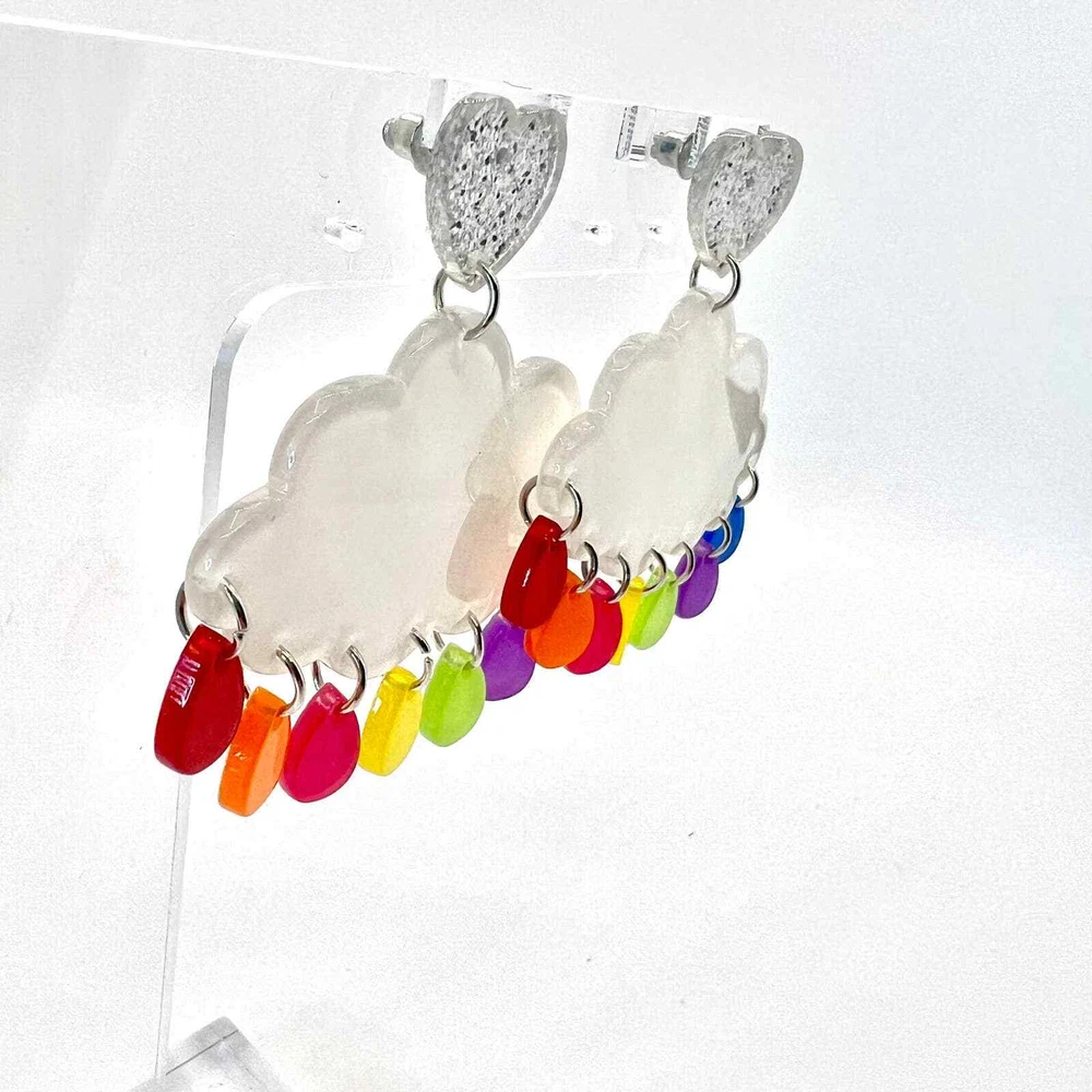 These earrings are made of acrylic with metal hooks. Clip-on hooks are available upon request during checkout. All earrings are handmade and ship within 1-3 days of purchase.