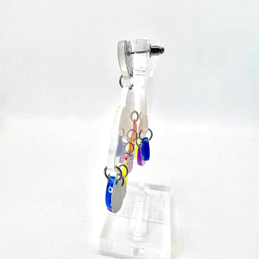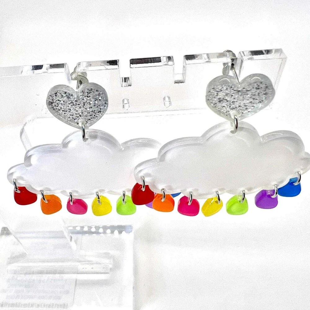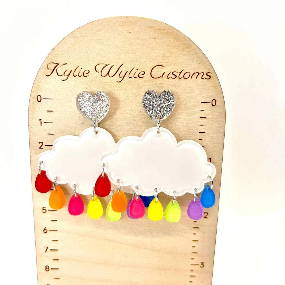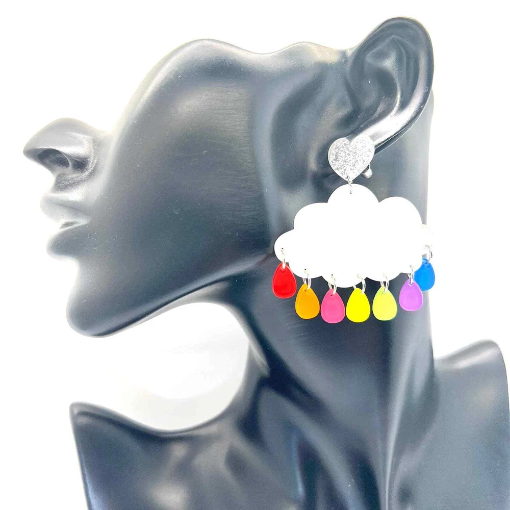 These earrings are made of acrylic with metal hooks. Clip-on hooks are available upon request during checkout. All earrings are handmade and ship within 1-3 days of purchase.