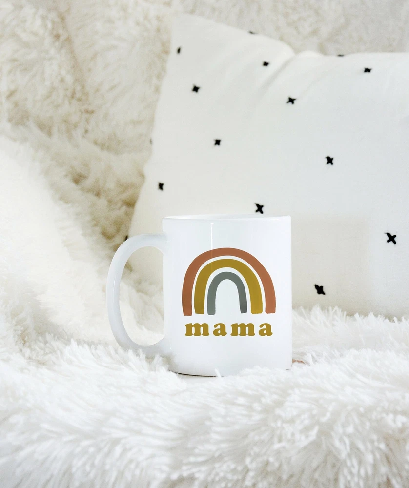 Rainbow Coffee Mug Baby Shower Gift Mother's Day Gift New Mom Gift Mom Coffee Product Details.. This high quality 11oz. ceramic white mug has a premium hard coat that provides crisp and vibrant color reproduction sure to last for years. Perfect for all hot & cold beverages. The highest quality printing possible is used. It will never fade no matter how many times you wash it. Material: 100% Ceramic. Print both sides. Dishwasher and Microwave Safe. High Gloss + Premium White Finish. Printed in the U.S.A. Personalized & Custom. We support personalized and custom mug to add custom, when placing an order, you can add notes to the "order note" in shipping address section. Also you can contact us directly via message. Shipping Info. Ready to ship in 1 to 2 business days, All products are made-to-order and proudly printed in the United States. Shipped by USPS and DHL, You will receive your order in 5-7 days. Replace & Refund. All products are defective during shipping broken, chipped will be replaced free of charge. You are not satisfied with the product, we will refund 100% money to you. If any other issues arise, please do not hesitate to message, we would be more than happy to assist you.