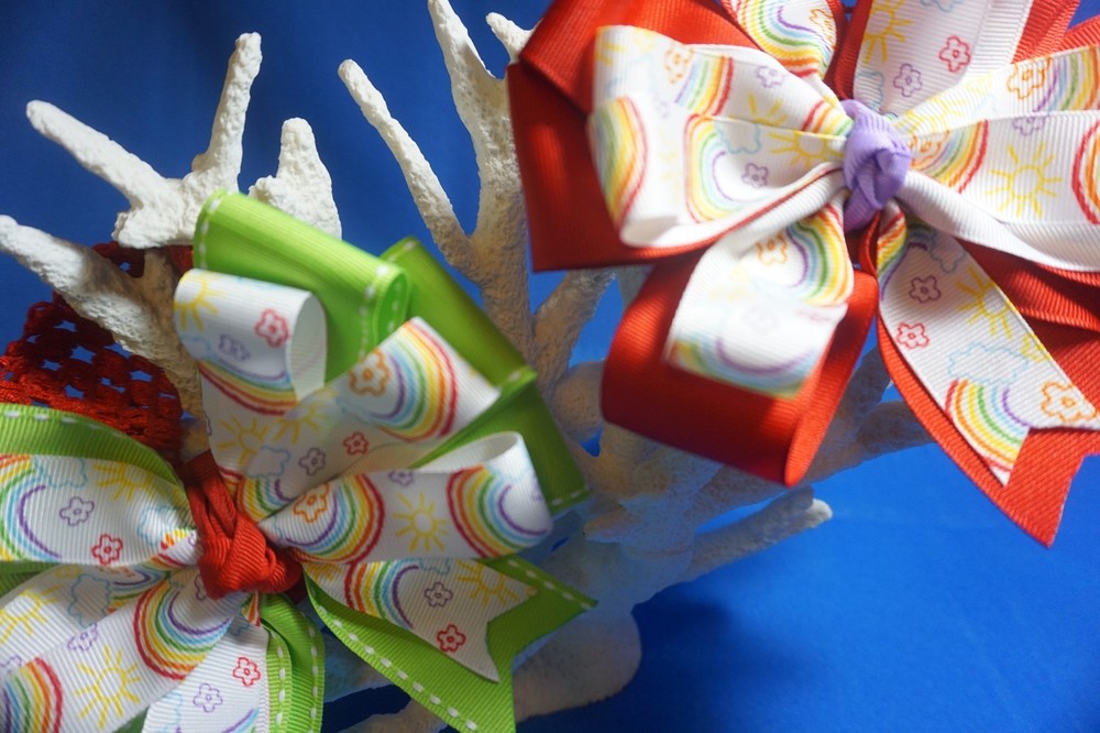 NEW & CRISP THIS AUCTION IS FOR A CUSTOM MADE HAIR BOW/HEADBAND RAINBOW---BACK TO SCHOOL---SET FOR TWINS......MULTI COLORED ALL NEATLY MADE ON A 1.5" CROCHETED RED HEADBAND BOW ITSELF IS APPROXIMATELY 6 1/2" THIS HAIR ACCESSORY IS MADE FOR YOUR LITTLE GIRL INFANT & UP TO ADULT..... ALL ENDS HAVE BEEN HEAT SET & SECURED ......... BUT, PLEASE AS ALWAYS, PARENTAL SUPERVISION IS RECOMMENDED MOST OF MY BOWS ARE ONE OF A KIND........... MY HOME IS SMOKE FREE & CLEAN THIS IS WHAT I LIKE TO DO & IN MOST CASES I WILL SHIP THE SAME DAY THE ITEM IS PAID I LOVE A HAPPY CUSTOMER & WILL WORK VERY HARD TO MAKE YOU HAPPY...PLEASE READ MY FEEDBACK......??????? PLEASE ASK PAYMENT IS DUE WITH IN 3 DAYS OF AUCTION ENDING......NON PAYING BUYERS WILL BE REPORTED & THE ITEM WILL BE RELISTED.....SORRY! I WILL SHIP THIS IN A BOX SO YOUR BOW WILL STAY AS PERFECT AS POSSIBLE THANK YOU PEACE, LOVE & HAPPINESS