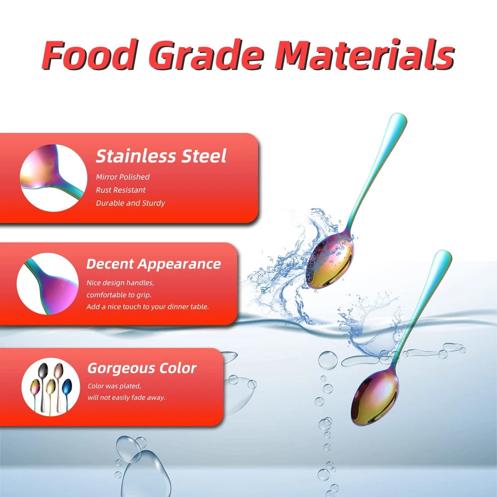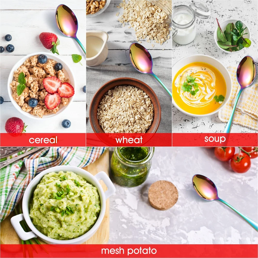 ✅Where Are All The Spoons?--Do you usually searching for tablespoon? Yes, somehow metal spoons are disappearing around the appartment. So people do need spare spoons. sturdy table spoons set of 12 pieces will help. They are nice and substantial, and the good quality does last long. With nice size, the kitchen spoon is ideal for everyday utensils, as well as formal dinners. Such as gathering, dinner party and Holiday. ✅Shape/Balance + Price = Perfect!--All kitchen utensil spoons are in excellent. Perfect balance of toughness with simple elegance. The Kitchen spoons are attractive and feel good in hand. Nice set with thrifty price.They are oval and make a great metal spoon for chowder, oatmeal, soup or cereal, cake, or stirring and mixing spoons.Work as dessert, coffee, salad, appetizer, dinner.GREAT SET OF SILVERWARE SPOON to have with TEENAGER in the house. ✅Premium Quality and Size --The tea spoons are made of food grade 18/0 high quality stainless steel, mirror polished and edges smoothen for a pleasant using. These stainless steel spoon is rust-proof and hefty enough to not bend when digging ice cream or watermelon. The spoon size is 6.7 inch, ideal work as a dessert spoon. A decent spoon that can live in your standard lunchbox, too. ✅Enjoy Modern Kitchen Silverware Spoons -- The decent soup spoons stainless steel enable enjoy meals in ease. It does not look or feel cheap. You will get compliments when your people sees your flatware spoon set. Make a worthy investment which not only cost effective, but a useful tableware set you will appreciate. The utensil cutlery set is DISHWASHER SAFE. ✅Buy with Confidence -- Whether you are buying a kitchenware set for yourself or as a gift for newlyweds or new apartment essentials for the first apartment, we are sure you'll love our modern flatware as much as we do. We craft our silver ware using only quality materials and focus on better designed. Our goal at is to provide our customers with premium products at an affordable cost, so you can better enjoy your comfortable life and leave the details to us.