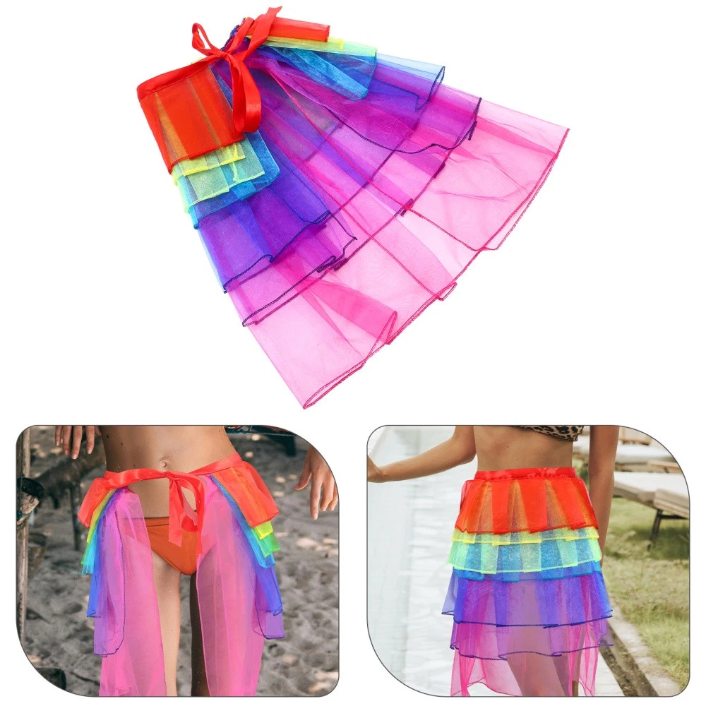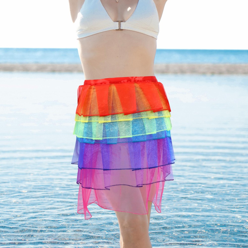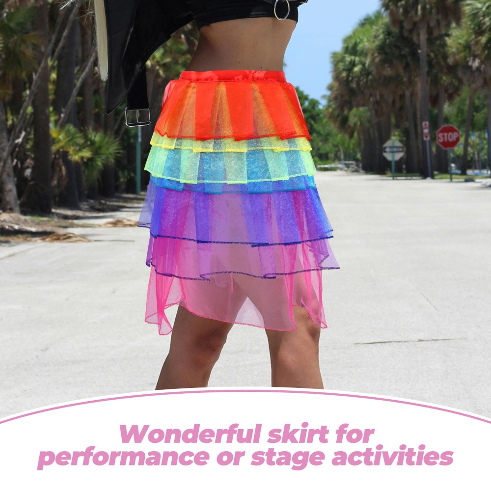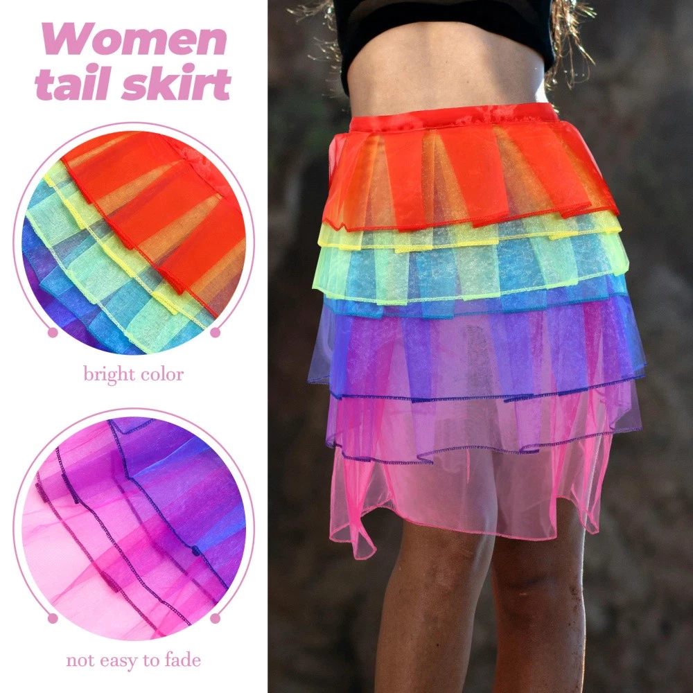 Rainbow Long Tail Skirt Bride Work Colorful Tutu Holiday Party