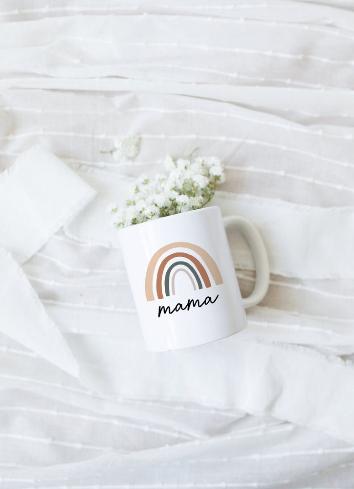 Mama Coffee Mug Rainbow Coffee Mug Baby Shower Gift Christmas Gift New Mom Gift Product Details.. This high quality 11oz. ceramic white mug has a premium hard coat that provides crisp and vibrant color reproduction sure to last for years. Perfect for all hot & cold beverages. The highest quality printing possible is used. It will never fade no matter how many times you wash it. Material: 100% Ceramic. Print both sides. Dishwasher and Microwave Safe. High Gloss + Premium White Finish. Printed in the U.S.A. Personalized & Custom. We support personalized and custom mug to add custom, when placing an order, you can add notes to the "order note" in shipping address section. Also you can contact us directly via message. Shipping Info. Ready to ship in 1 to 2 business days, All products are made-to-order and proudly printed in the United States. Shipped by USPS and DHL, You will receive your order in 5-7 days. Replace & Refund. All products are defective during shipping broken, chipped will be replaced free of charge. You are not satisfied with the product, we will refund 100% money to you. If any other issues arise, please do not hesitate to message, we would be more than happy to assist you.