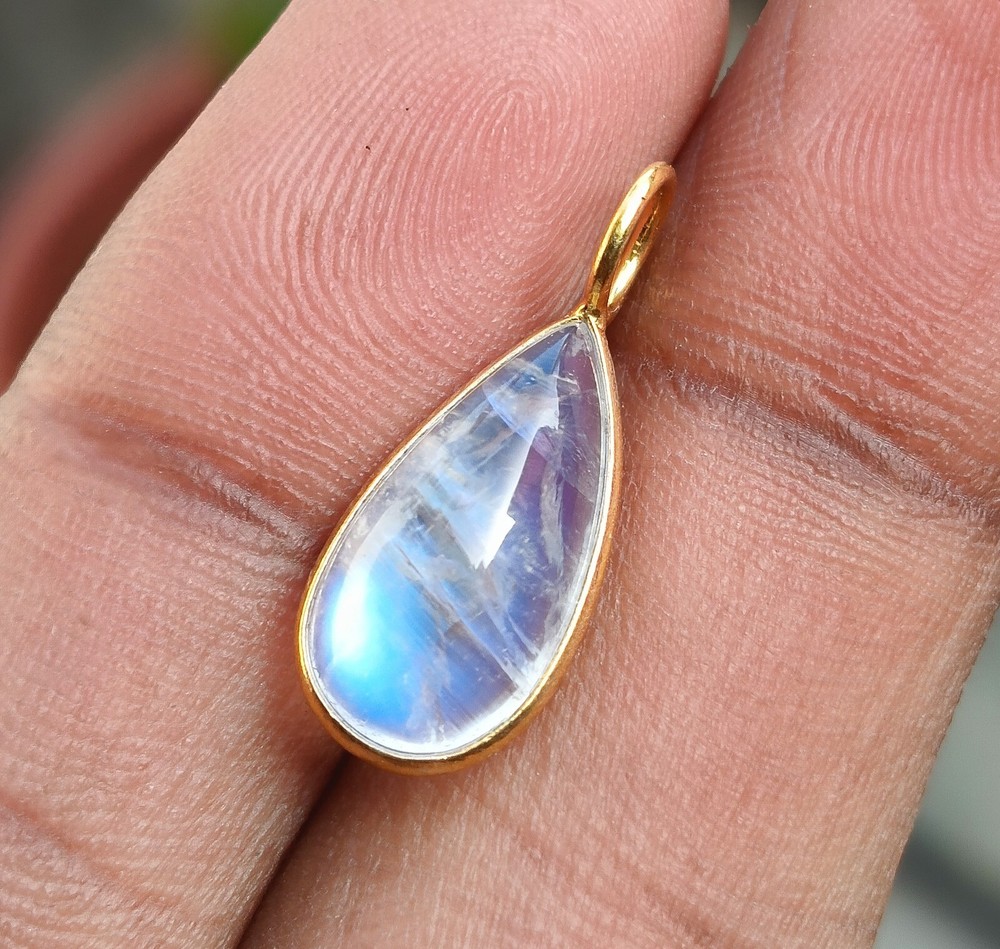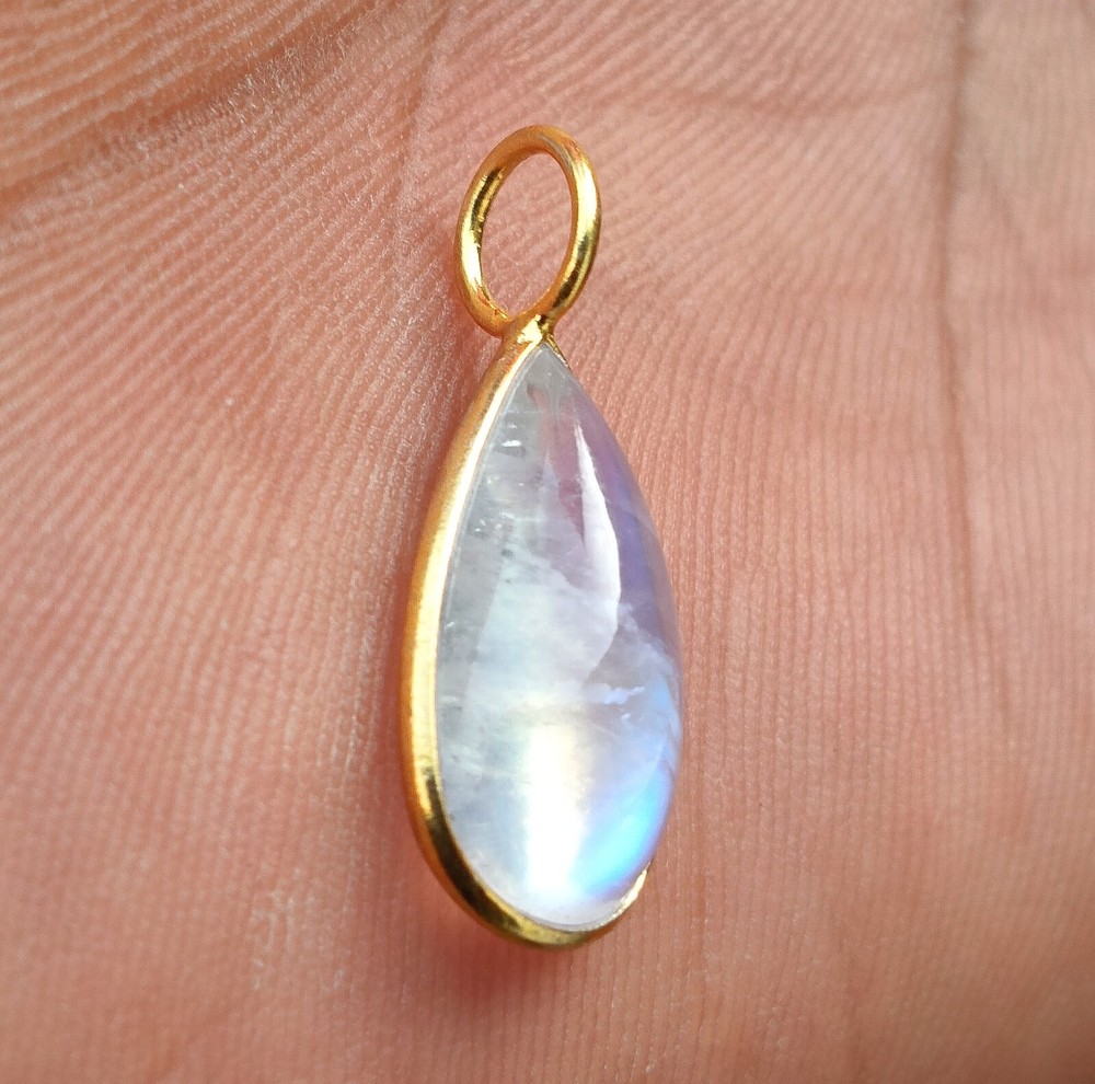 Crafted with an 18k yellow gold setting, this pendant showcases a pear-shaped moonstone gemstone that glows with a captivating fire. The bezel setting ensures the stone's security, while the locket type adds a touch of charm to this exquisite piece. A single, eye-clean moonstone, natural and not enhanced, is the star of this show, its beauty underscored by the gold's warm glow. The pendant is a versatile piece suitable for numerous occasions, from anniversaries and birthdays to engagements and Mother's Day. It comes with the assurance of a seller warranty and is nickel-free, making it a considerate choice for those with sensitive skin. Designed and manufactured in India, this pendant is a testament to timeless elegance and artisanal craftsmanship. Material Metal = 18k Gold Gemstone = Moonstone Gemstone Color = Fire Gemstone Size = 8x15 MM Gemstone Creation =Natural Total Charm weight =1.100 gram Charm Ball Size = 4.5 mm Inside Charm Total Length = 22 MM Charm Total Width : 9 mm Product Making = Handmade Thank You Visiting My Shop Shipping US shipping - Free Shipping International- Free Shipping We provides you each item is individually packed securely with quality products to help ensure safe and undamaged delivery. RETURAN POLICY Your satisfaction is of the utmost concern to us. Should you need to return an item, you can do so within 7 days of receipt of the item a full refund. Return shipping charges are not reimbursable. All items must be in their original condition, not worn or altered. Thank You RR JEWELS