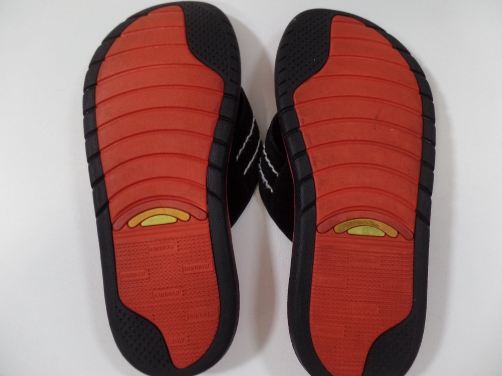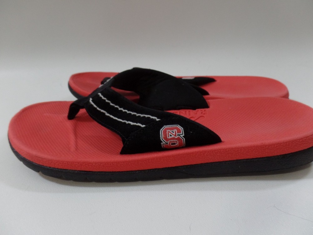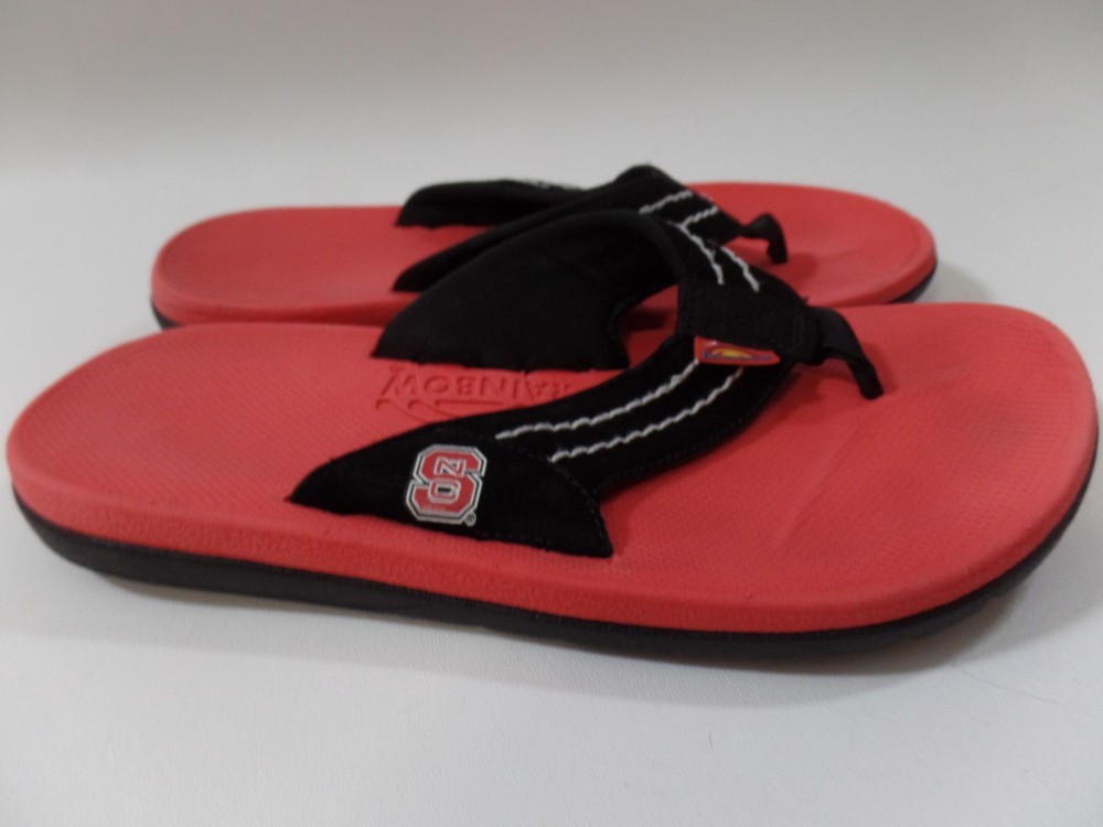 The Rainbow Men’s Sz 8 sandals in NC State color scheme are a stylish and comfortable choice for men. These slip-on sandals feature a layered design with red and black accents, representing the colors of NC State. Made of leather, these flip flop style sandals are perfect for casual wear and showing support for the NC State team or school. The Rainbow brand adds a fun and colorful touch to these unique sandals. Please review all photos. S45