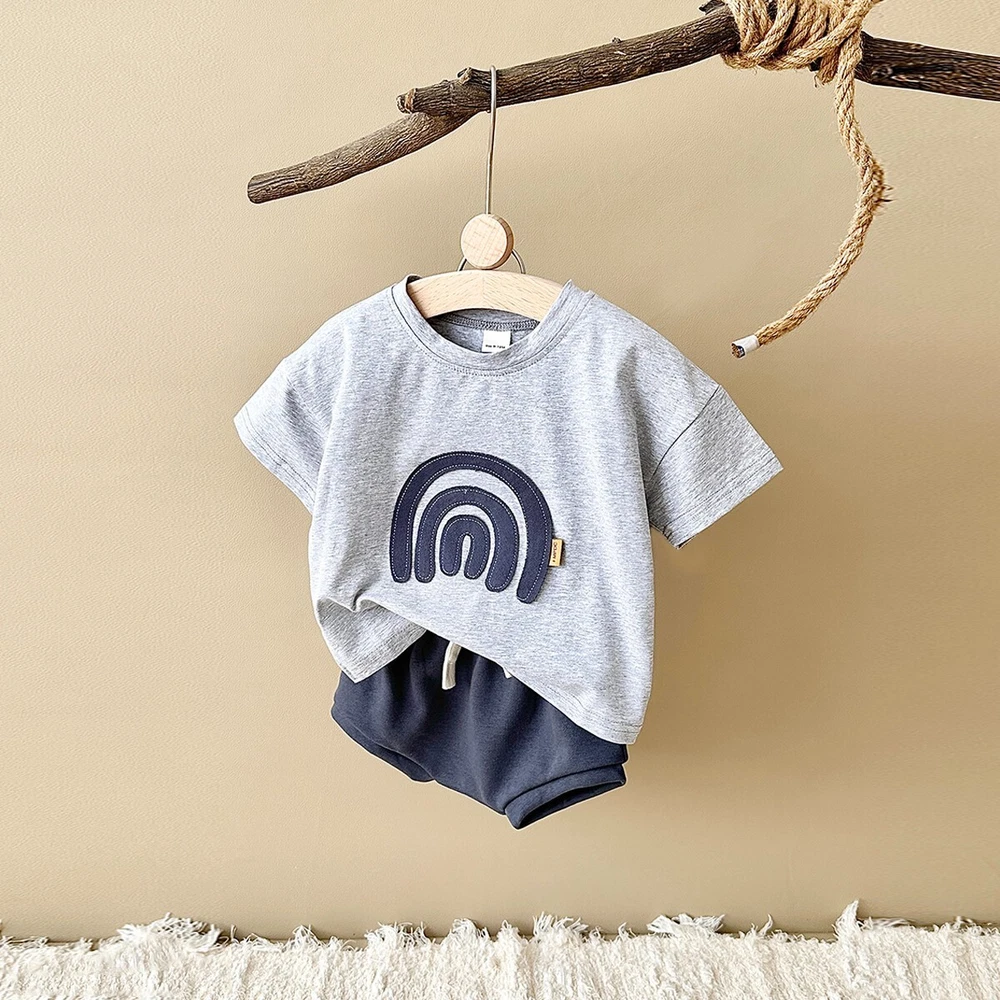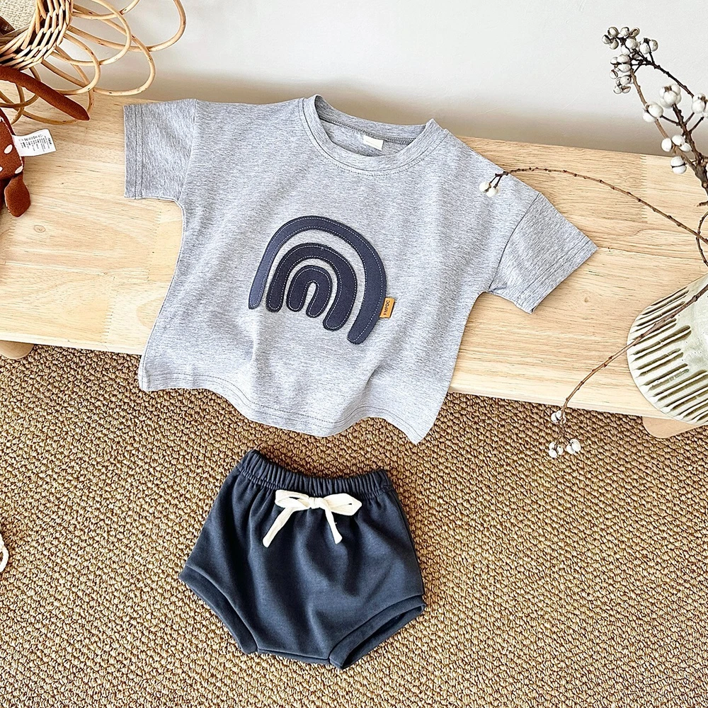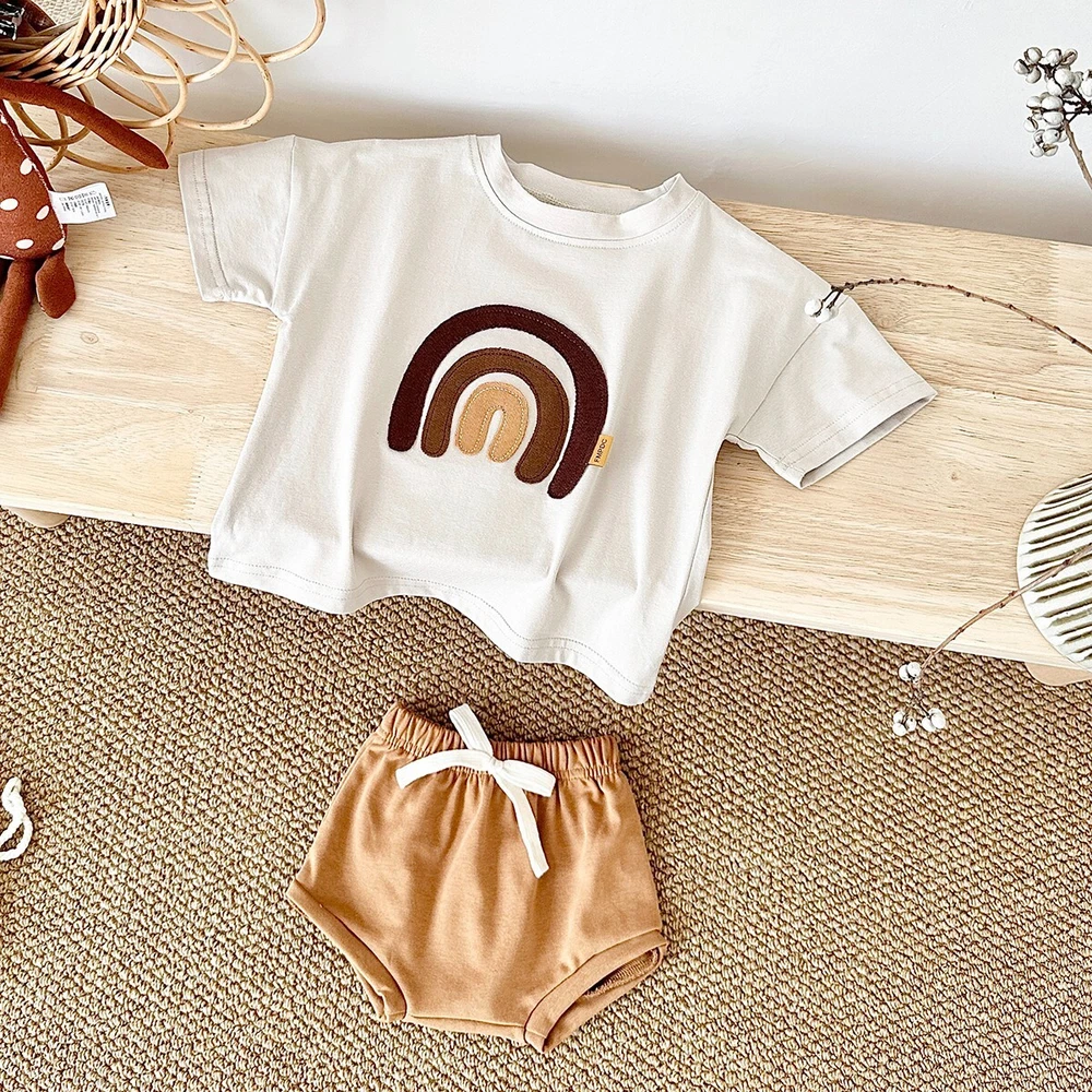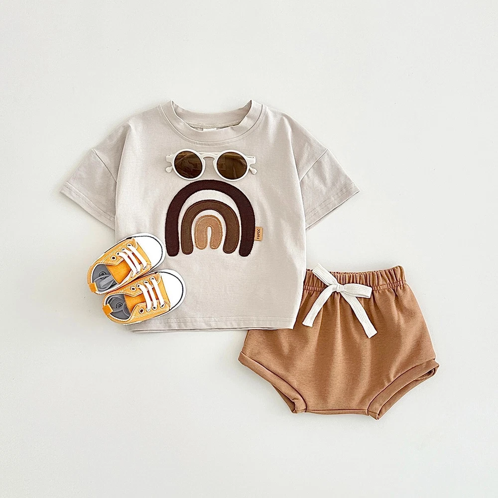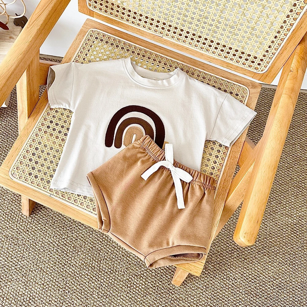 Rainbow Patchwork T-Shirt and Shorts Set for Baby Boys Girls 2Pcs