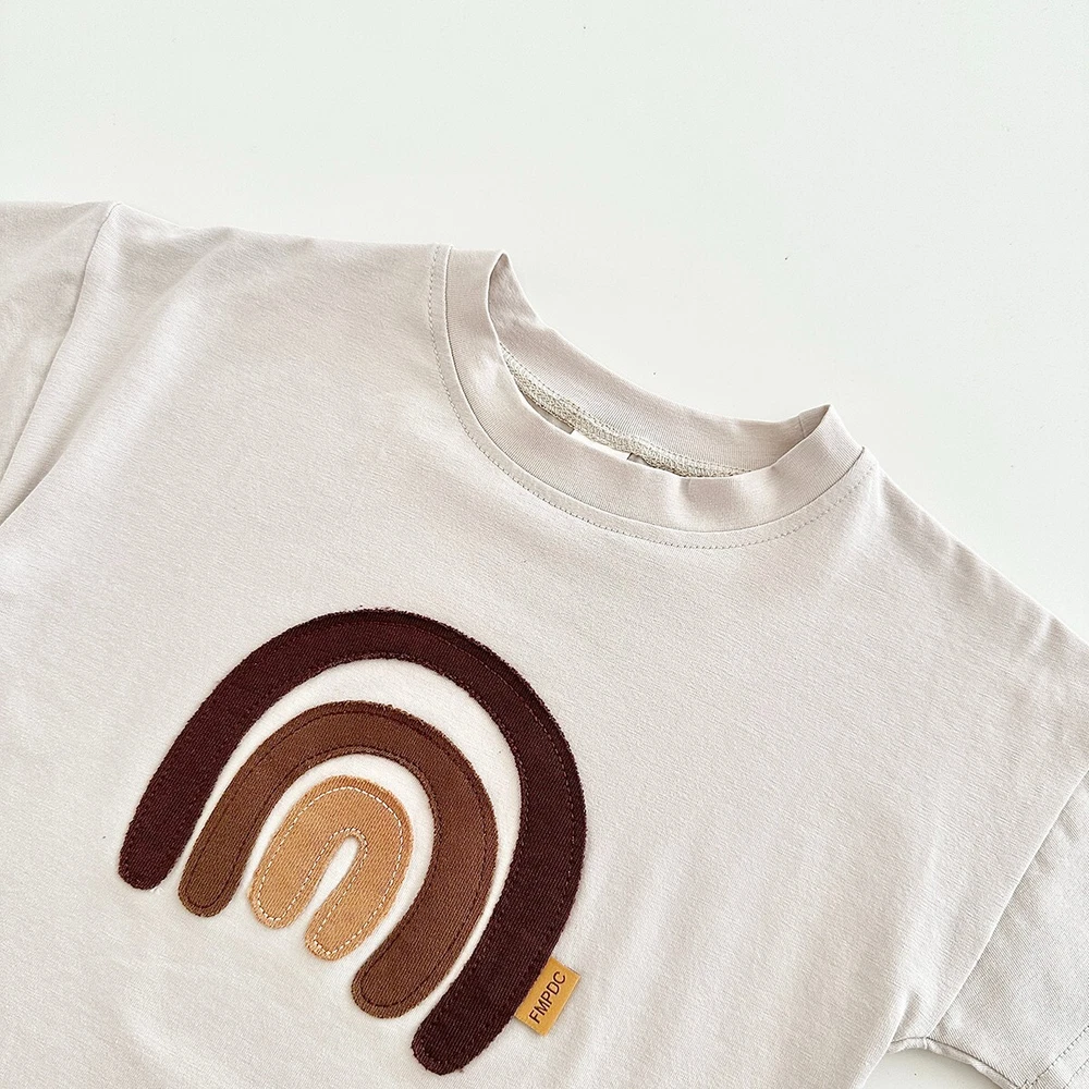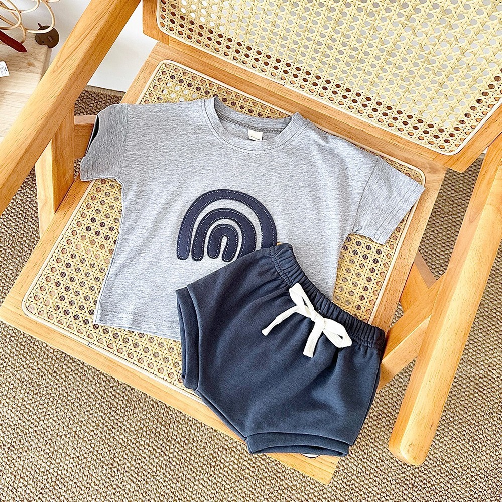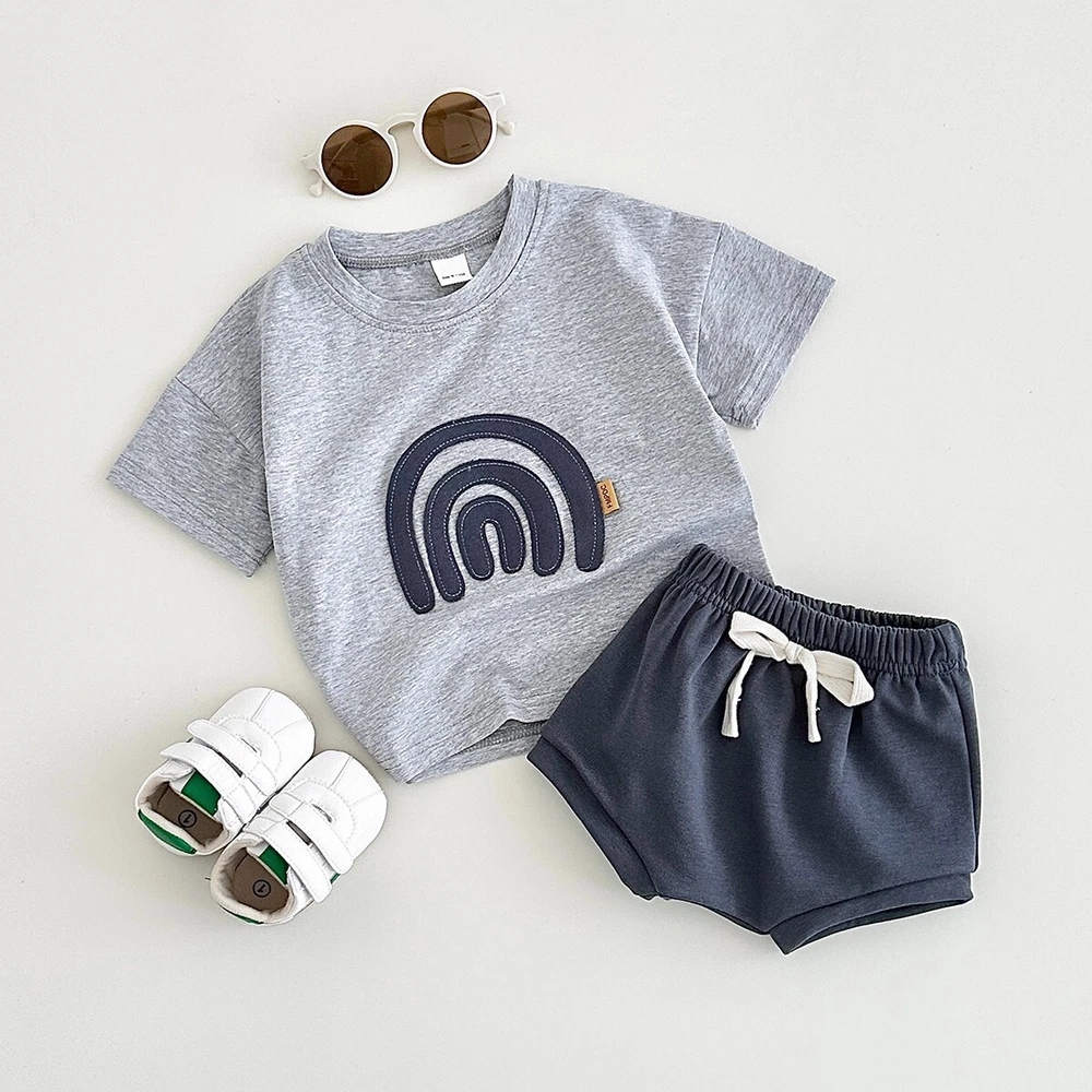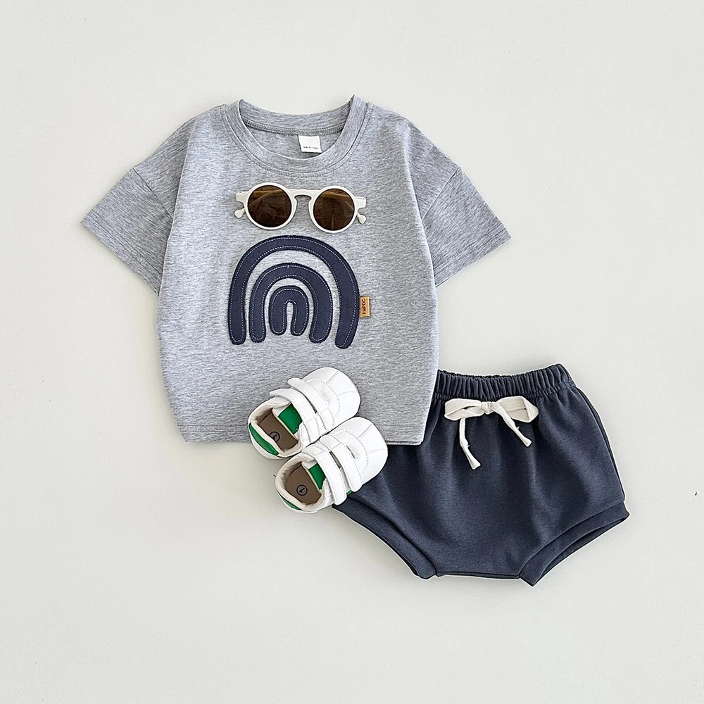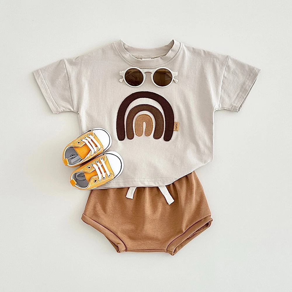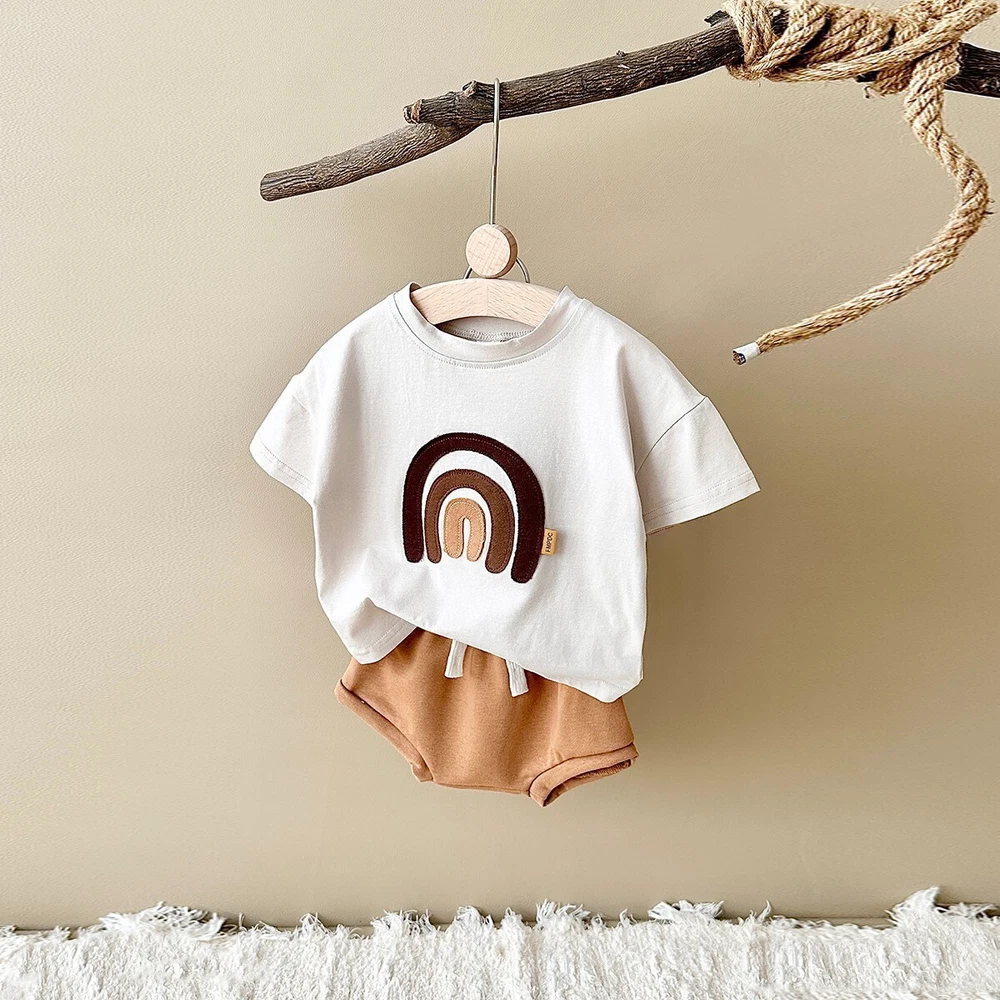 Rainbow Patchwork T-Shirt and Shorts Set for Baby Boys Girls 2Pcs