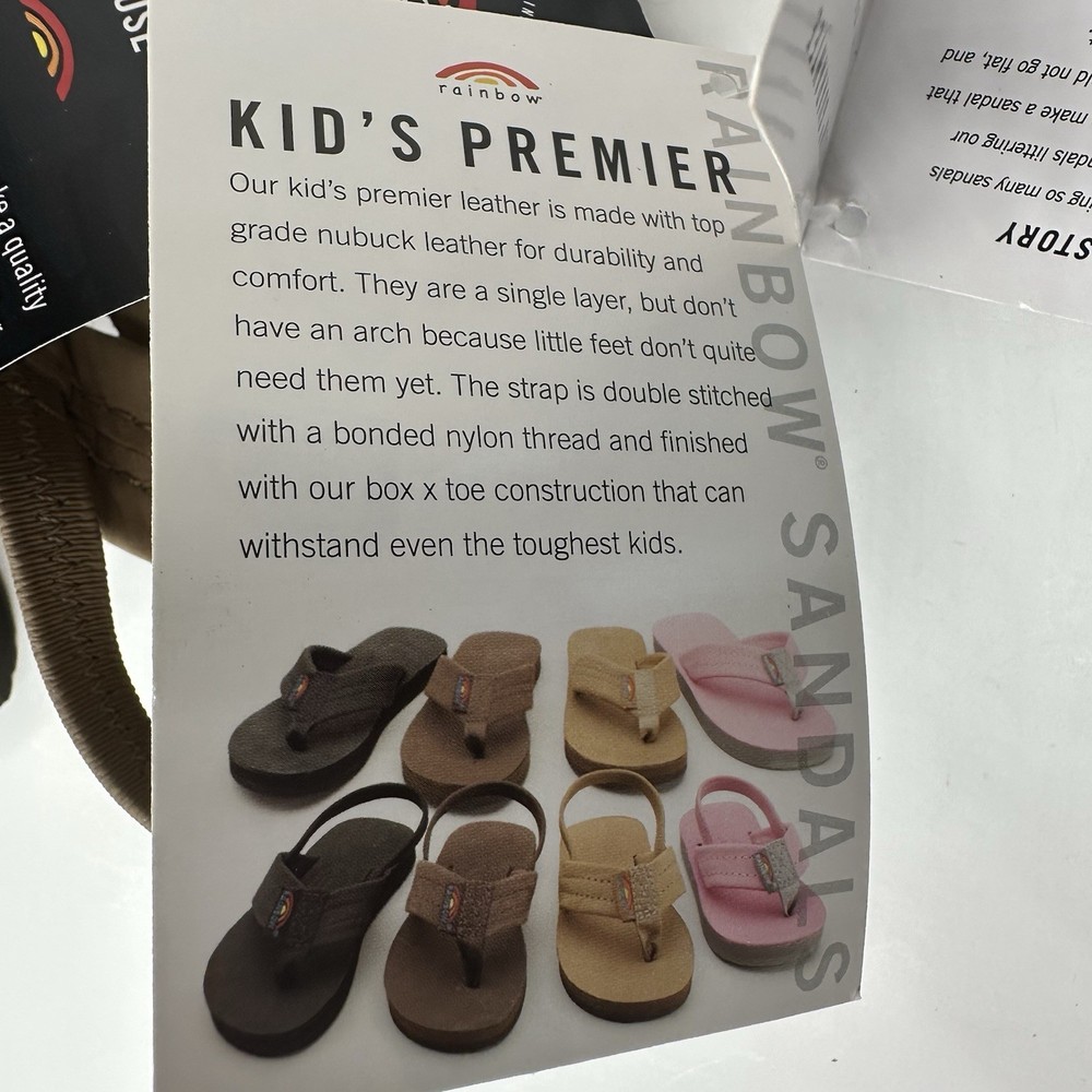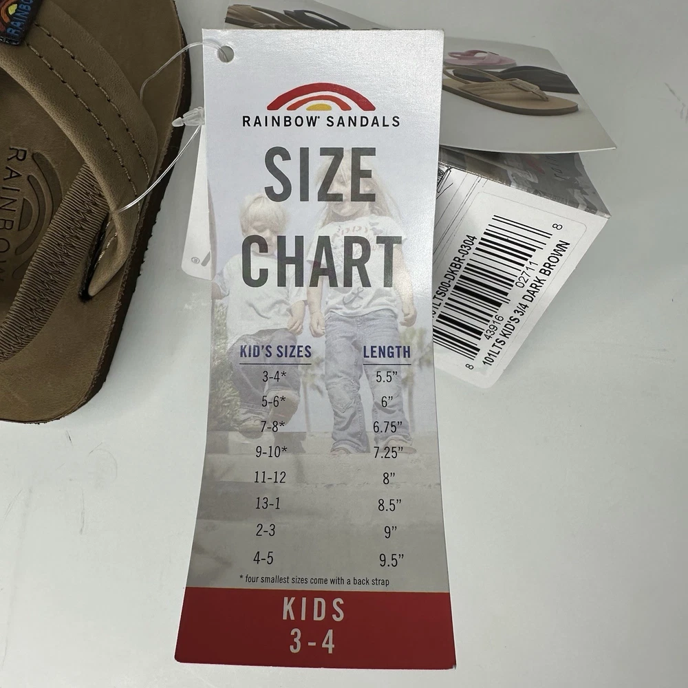 Rainbow Sandals Kids Unisex Leather Single Layer With Heel Strap Brown Size 3/4 Brand new w/ tags!