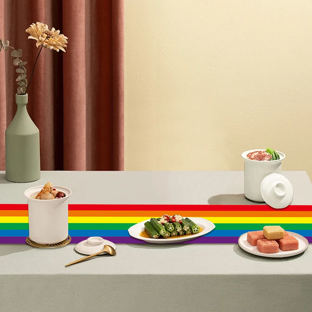 High-quality Material: Crafted from high-quality Oxford cloth, this rainbow table runner ensures a vibrant touch to your decor; reusable, it resists fading, promising long-lasting beauty. Easy to Clean: This vibrant rainbow table runner, easily hand washable and ensured to retain its size and color, simplifies your cleaning routine. It will not shrink when washed. Bright Decoration: Seamlessly enhancing your dining experience, this rainbow table runner infuses any setting with a rustic charm and a progression of bright, uplifting colors for a truly warm decoration. Wide Range of Applications: Decorate your celebration with our rainbow table runner, perfect for Pride Day festivities, and birthday bashes, and versatile enough for daily dining. Perfect Gift Choice: Decorate your table with this colorful rainbow table runner, the perfect present to elevate parties and holidays with vibrant charm. Make a statement with our rainbow tablecloth! Perfect for Pride Day party tables, kitchen tables, and more. With bright colors that pop, it adds to the atmosphere. Made of reusable materials, it's easy to clean and perfect for indoor and outdoor use. Specification: Product Material: Oxford cloth Product Size: about 35x180cm/13.78x70.87 inches Product Weight: about 140g Product List: 1* Rainbow Table Runner Notes: Due to the lighting effects and filming angles, there is a color difference in the product, please understand. Due to manual measurement, there is a tolerance in the product size. The actual product shall prevail, thank you!