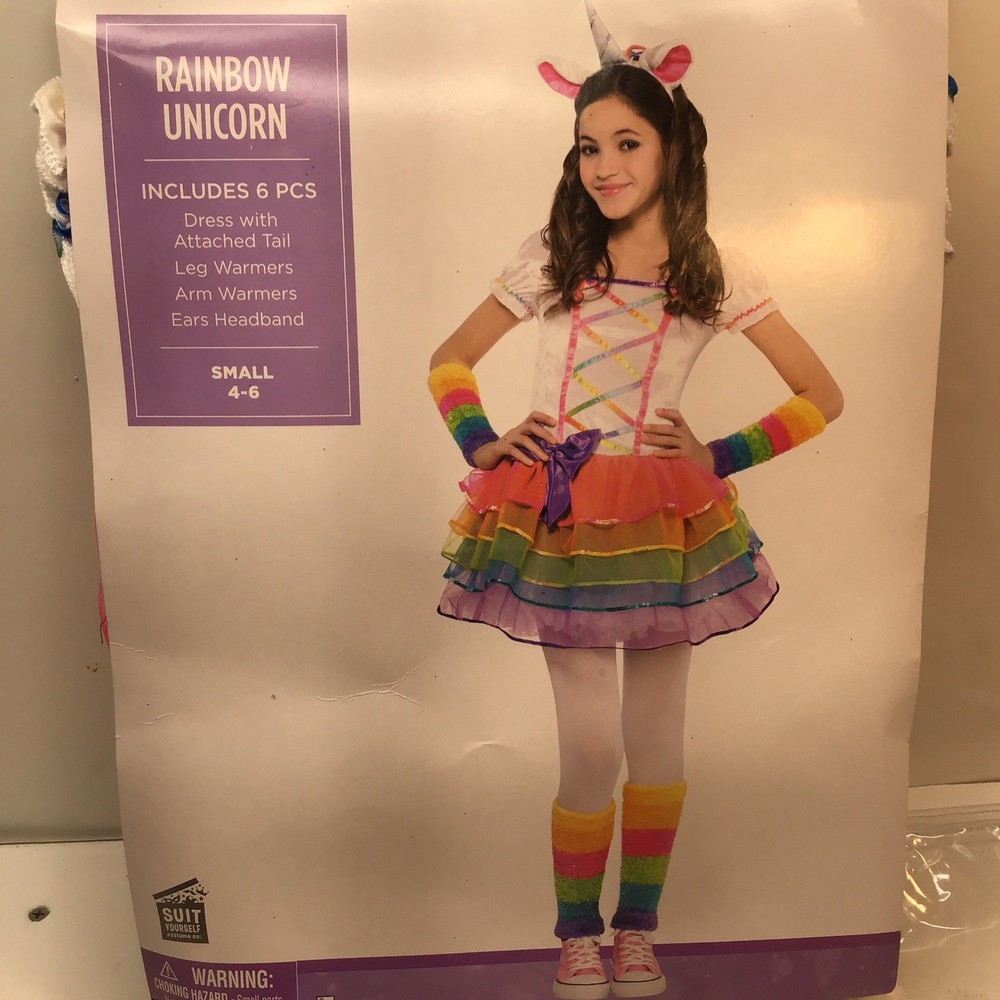 Rainbow Unicorn Halloween Costume 6pc Girls Sz S