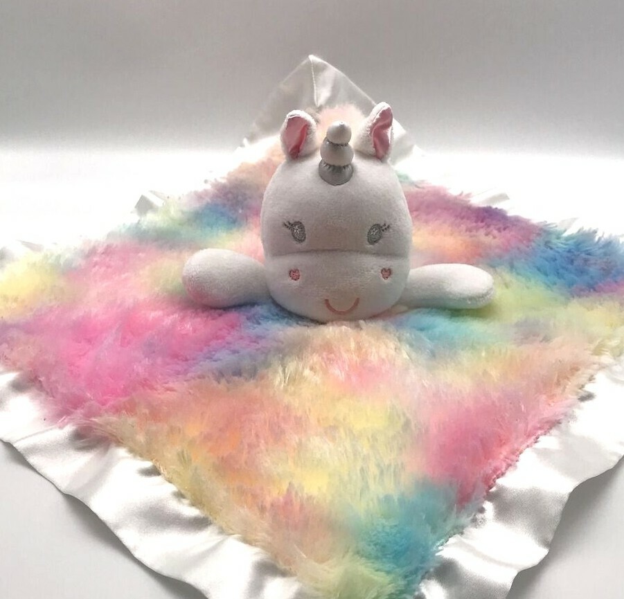 Rainbow Unicorn Satin Trim Lovey Security Blanket for Babies