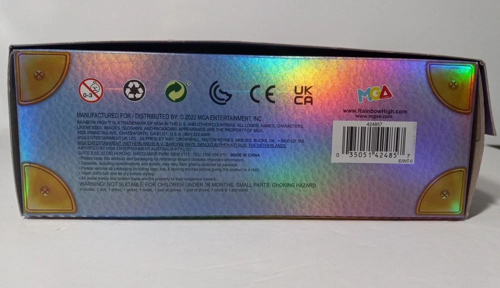 Year Manufactured: 2022 UPC: 0035051424857 Character: Violet Willow Time Period Manufactured: 2020-Now Product Line: Rainbow High Doll Complexion: Light Doll Eye Color: Blue Vintage: No Brand: MGA Entertainment Doll Gender: Girl Doll Features: Special Edition Custom Bundle: No Franchise: Rainbow Set Includes: Doll gtin13: 0035051424857 Packaging: Original (Unopened) Type: Fashion Doll Doll Hair Color: Purple Original/Licensed Reproduction: Original Doll Size: 11 in Material: Plastic Unit of Sale: Single Unit Occasion: All Occasions