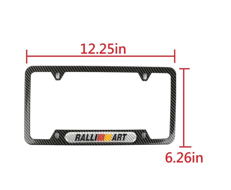 2Pcs Ralliart Carbon Fiber Stainless Steel License Plate Frame With Real Carbon Fiber Emblem For Mitsubishi USA TRUSTED SELLER !! FREE SAME DAY !! FAST SHIPPING !!! DESCRIPTION 100% Brand New and High Quality , Never Used or Installed Material : Metal Stainless Steel + Real Carbon Fiber Emblem Color : Black Carbon Fibe & Silver Emblem License Plate Size: 12.25" x 6.25" Emblem Measure: 5.5" x 0.78" (140mm x 20mm) Emblem Come with High Quality Adhesive Sticker Applicable models: UNIVERSAL FIT FOR MITSUBISHI CAR MODEL Installation : Direct Bolt-on Replacement. No Modification Required Exactly The Same As Picture Package includes: 2Pcs License Plate Frame ( 1 Pair )