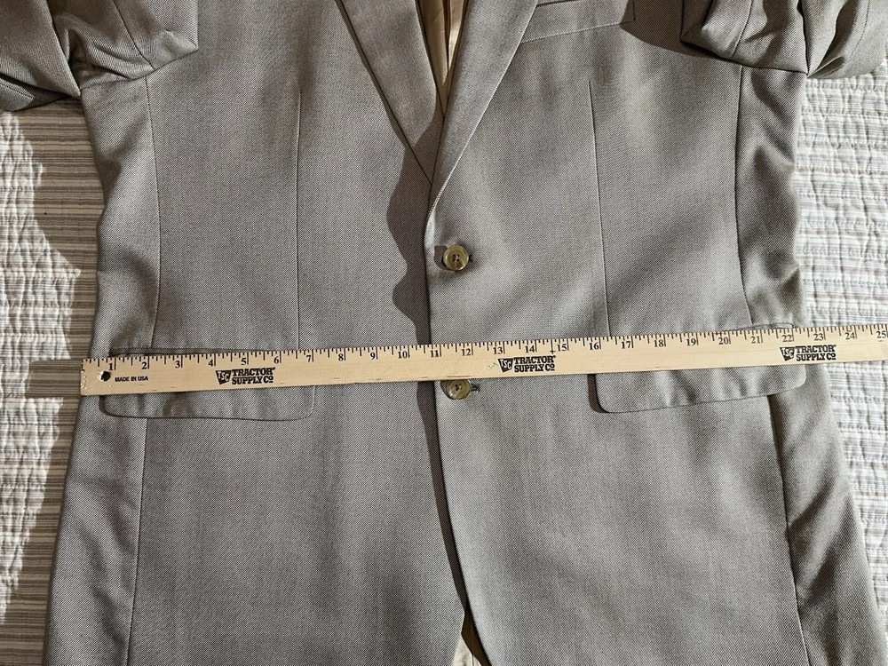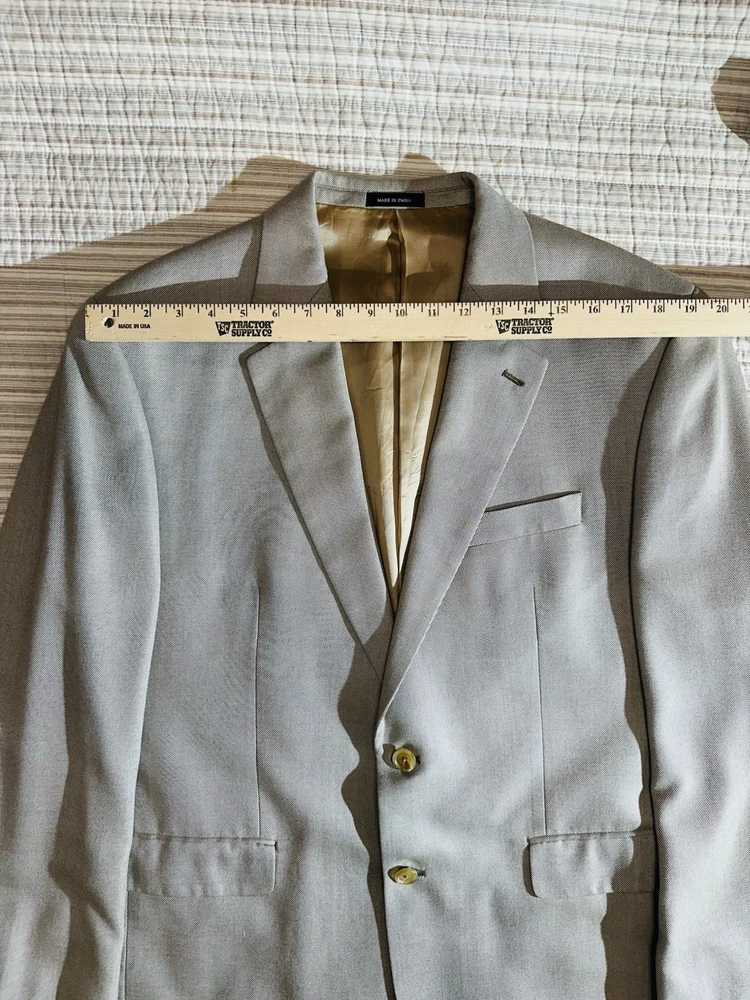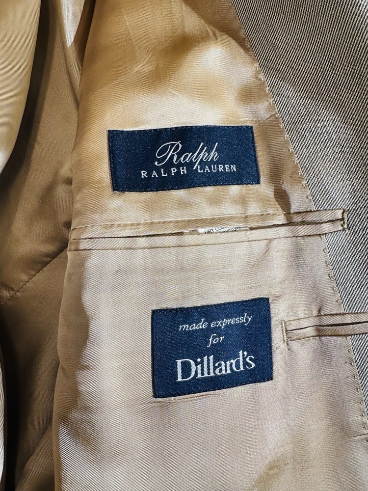 Crafted with the sophisticated gentleman in mind, the Ralph by Ralph Lauren Tan Sports Coat is a timeless addition to any wardrobe. Made from 100% bamboo, this size 44 regular jacket offers both comfort and durability. Its solid tan hue makes it versatile for various occasions, whether you're dressing for a casual day out or a business meeting. The coat features a classic notch lapel style and a two-button front that adds a touch of elegance to the overall design. Its regular fit ensures a flattering silhouette for a variety of body types. With its understated style and quality material, this sports coat is a staple piece that exudes Ralph Lauren's commitment to classic American style. * I do have pets and cannot guarantee no pet in here but do try my best