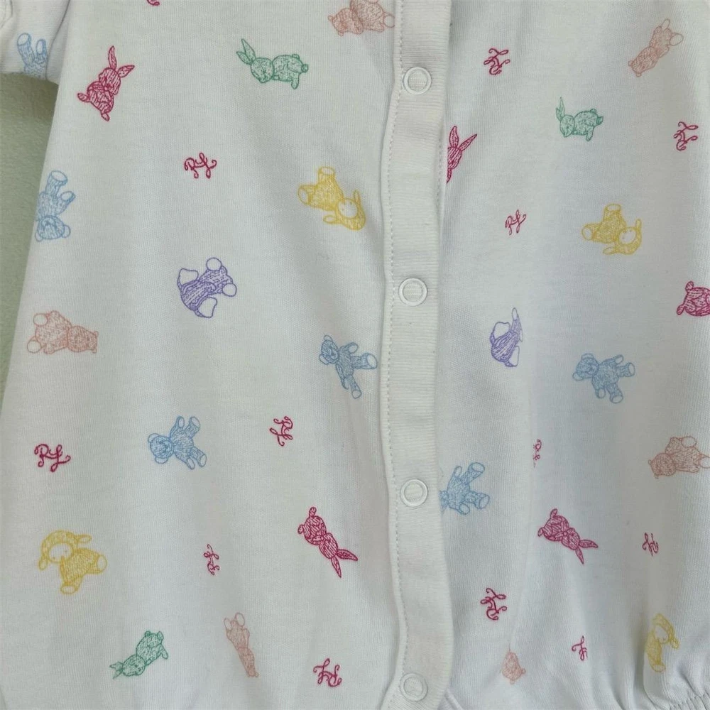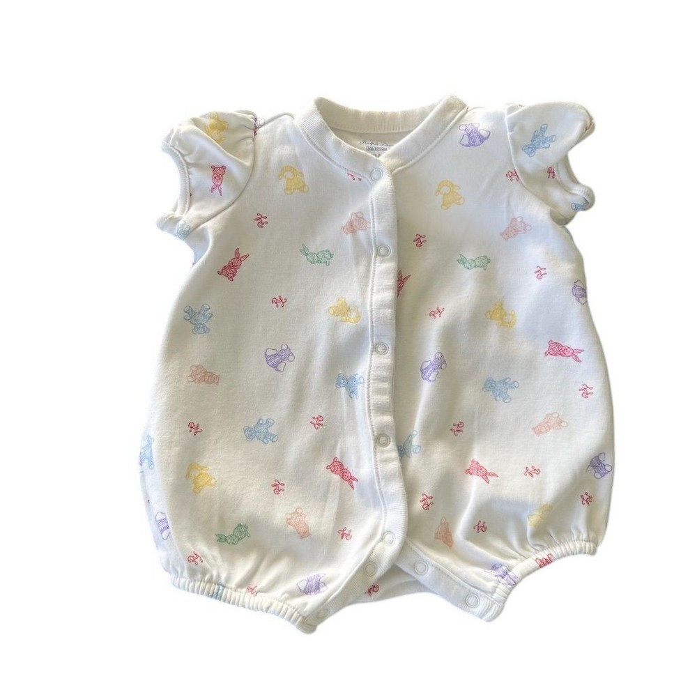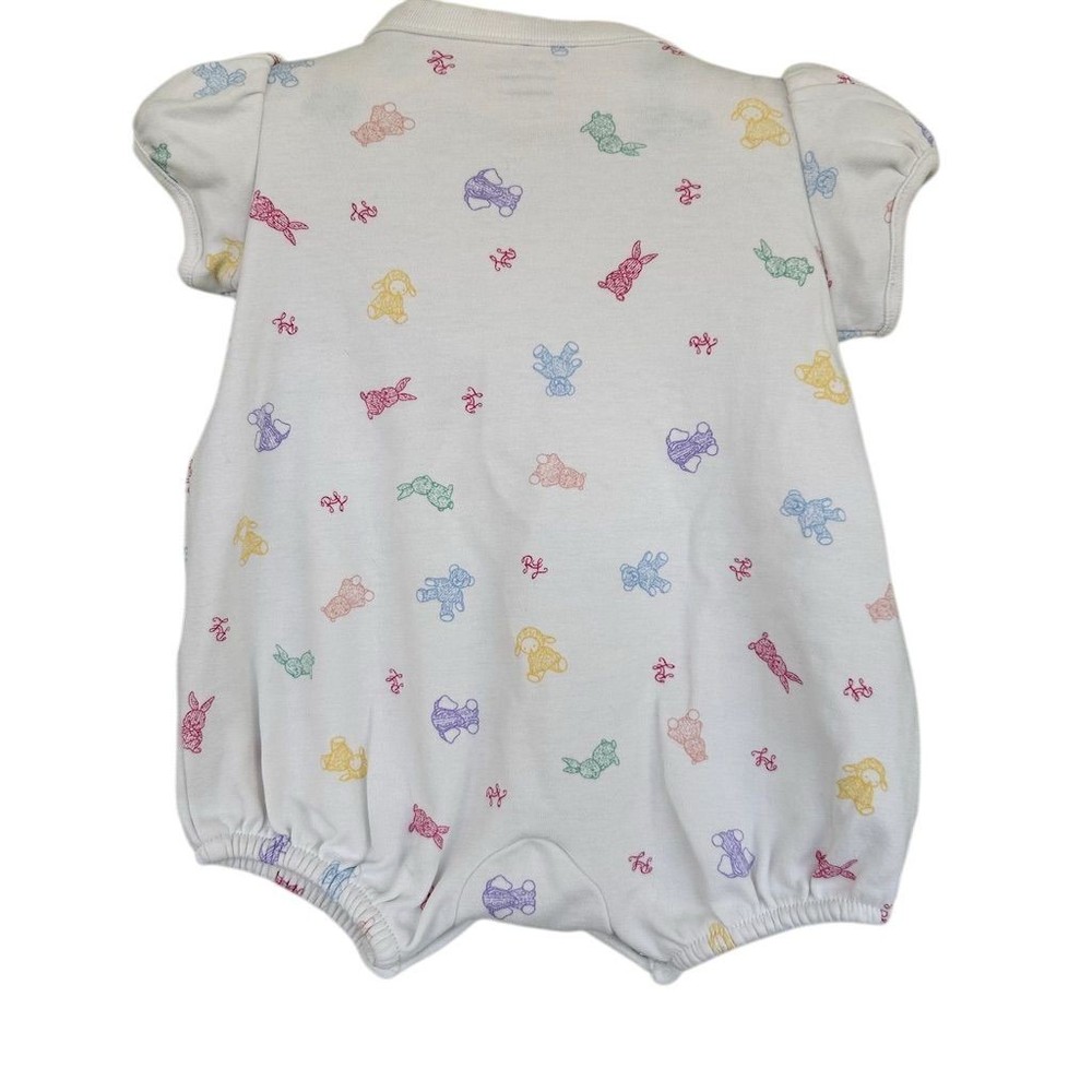 Ralph Lauren Baby Girls White Teddy Bear Bunny Print Bubble Romper NB