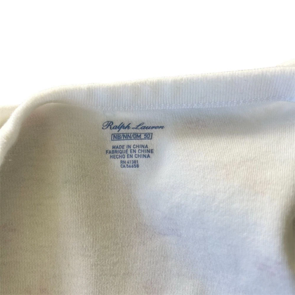 Material: Cotton Size: Newborn Color: White Set Includes: Bodysuit Garment Care: Machine Washable Department: Unisex Baby & Toddler Brand: Ralph Lauren Theme: Animals Personalize: No Features: Breathable Style: Romper Sleeve Length: Short Sleeve Pattern: Animal Print Number of Pieces: 1 Piece Country of Origin: China Season: Summer, Spring Fabric Type: Knit Accents: Button, Logo Handmade: No Neckline: Crew Neck Closure: Button Occasion: Casual Vintage: No Type: One-Piece