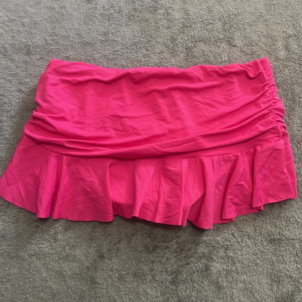 This flirty, ruffled skirt features ruched sides for a flattering fit, full rear coverage and mid rise styling for a chic, sophisticated look. Made of nylon, elastane and polyester. Covered elastic around waistband. Ruched sides help disguise tummy issues. Ruffle skirt hem for a flirty look. Tummy slimming powermesh lining at front. Brief has covered elastic along leg openings for a custom fit.
