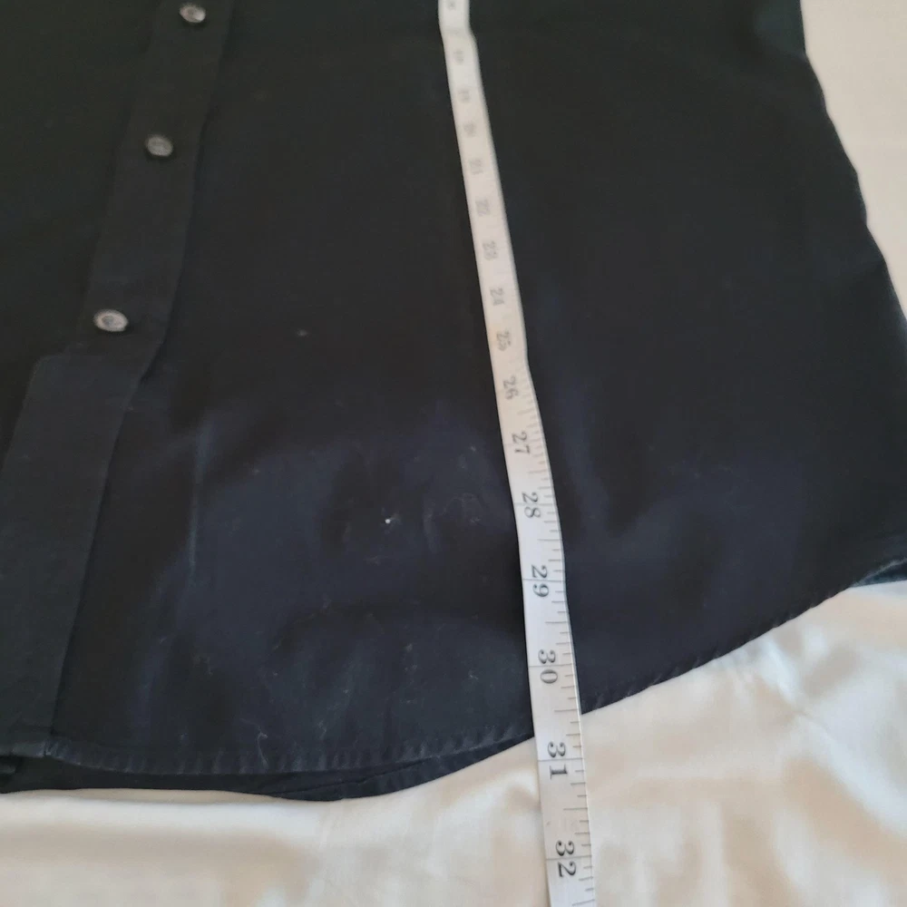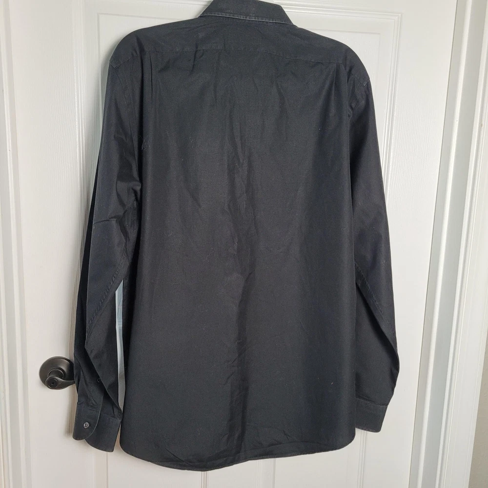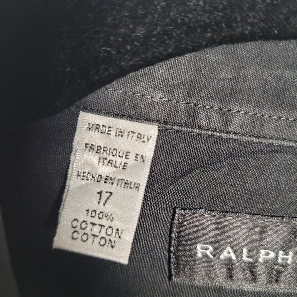 Ralph Lauren Black Label Shirt Mens 17 Black Made In Italy Dress Long Sleeve Previously worn with general light wear and lint throughout. One cuff button is broken. No major stains or tears observed. Brand: Ralph Lauren Style: Mens long-sleeve button front dress shirt with spread collar and barrel cuffs. Color: Black Size on tag: 17 (approximate mens XL neck size). Material: 100% cotton. Made in Italy. Details: Solid color design with tonal buttons, classic dress shirt styling without chest pocket, suitable for business, office, or formal wear. Special note: Previously worn with general light wear and lint throughout. One cuff button is broken. No major stains or tears observed. 304
