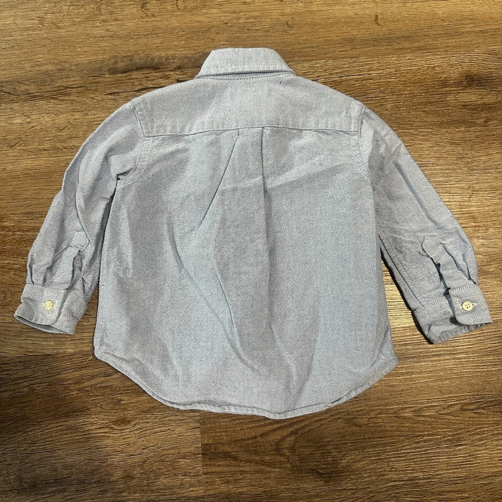 Classic and timeless, this Ralph Lauren boys’ long sleeve button-down shirt in blue is perfect for everyday wear, family photos, birthday parties, or special occasions. Made from soft, quality cotton with a sharp collared design. Details: Brand: Ralph Lauren Size: 12 Months Style: Long Sleeve Button-Down Shirt Color: Blue Material: 100% Cotton Condition: Gently used, no holes or stains. Features: Classic collared neckline Full button front closure Long sleeves with button cuffs Soft, breathable cotton for all-day comfort Polo logo for that signature Ralph Lauren look A versatile and stylish wardrobe staple that pairs easily with jeans, chinos, or shorts!