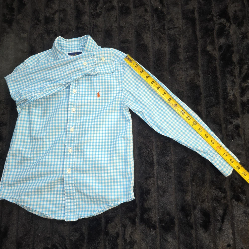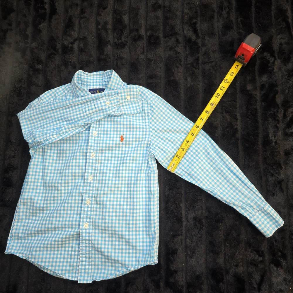 Ralph Lauren Boys Gingham Button Down Shirt Blue White Cotton Pony Logo Sz 8 SIZE: 8 COLOR: Blue White MATERIAL: 100% Cotton CONDITION: Pre-Owned in good condition. MEASURE APPROXIMATELY Pit to Pit: 15.5 in Length: 22.0 in Sleeve Length: 19.0 in 💗Note: Pre-owned in excellent condition. Made from 100% cotton for comfort and breathability. Classic Ralph Lauren gingham button-down shirt featuring the iconic embroidered pony logo. Measurements were taken on a flat surface and are approximate. Please review all photos carefully as they are part of the description. Feel free to ask any questions.