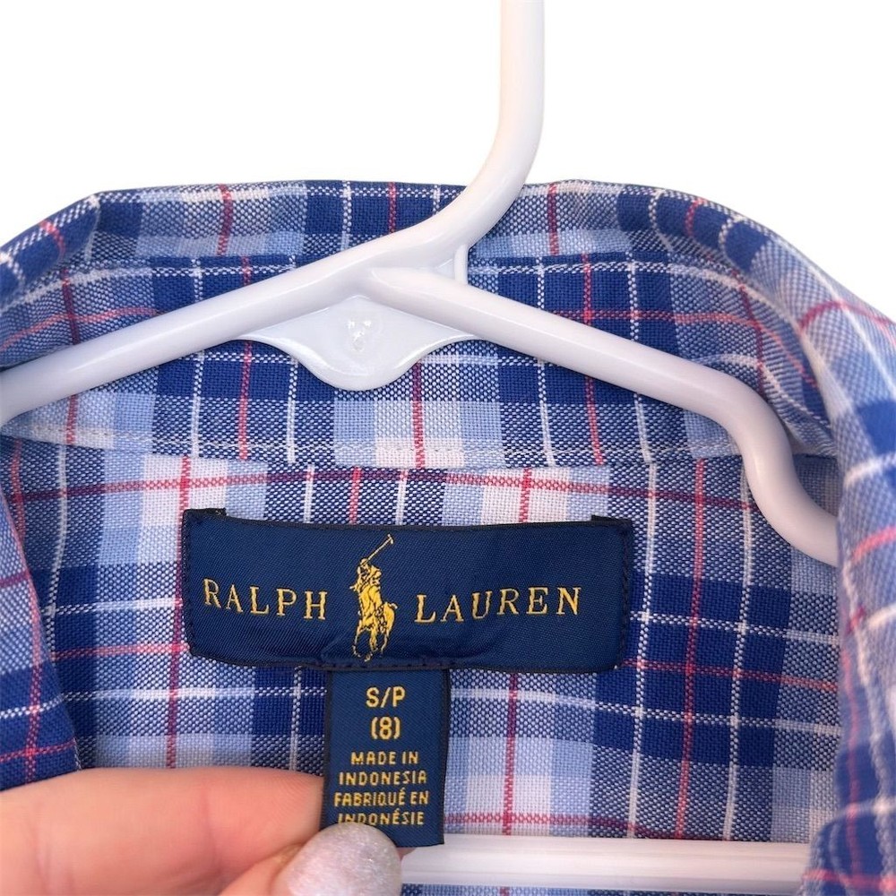 The Ralph Lauren Boys Small Blue Plaid Short Sleeve Button-Up Shirt is a classic and preppy addition to any young boy's wardrobe. Made by the renowned brand Ralph Lauren, this shirt is designed specifically for boys in size 8 years old. The blue plaid pattern adds a stylish touch, while the short sleeves make it ideal for casual wear. With a button-up style, this shirt is perfect for more formal occasions or layering over a shirt for a polished look.