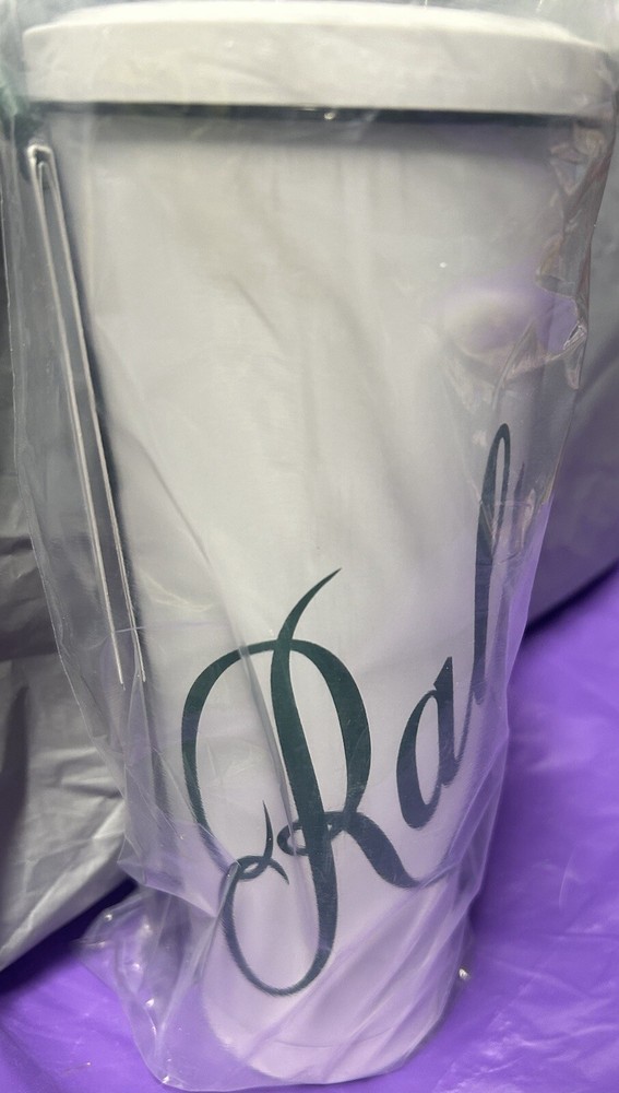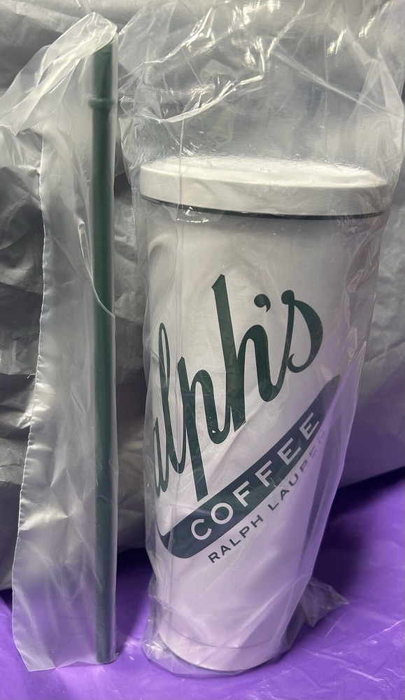 Ralph Lauren Coffee Tumbler with Straw Insulated Travel Cup New Rare