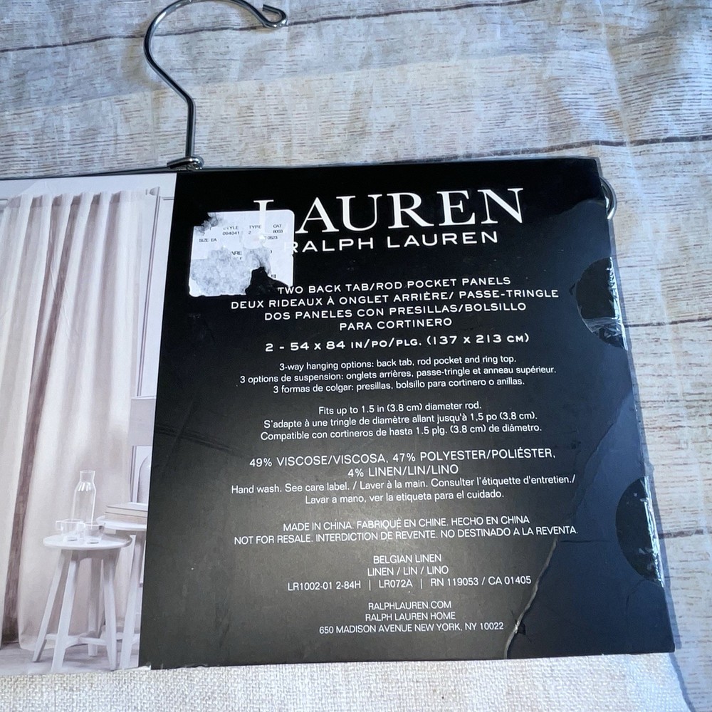 Ralph Lauren Curtain Panels New Belgian Linen 2- 54x84