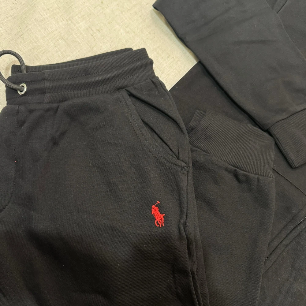 Elevate your casual wardrobe with the Polo Ralph Lauren Fleece Tracksuit, crafted for comfort and style. Made from a premium cotton blend, this tracksuit features a soft fleece interior, ensuring warmth and coziness for every season. The sleek black color is complemented by bold red embroidery of the iconic Polo Ralph Lauren logo, adding a pop of contrast and a touch of sophistication. Perfect for lounging or a laid-back outing, this tracksuit includes a full-zip hoodie with adjustable drawstrings and matching pants with an elastic waistband for a customizable fit. Whether you're relaxing at home or stepping out, the Polo Ralph Lauren Fleece Tracksuit is the ideal blend of luxury, comfort, and performance. Fabric : Cotton blend fleece for a soft, warm feel Color : Classic black with red embroidered logo Design : Full-zip hoodie with adjustable drawstrings, elastic waistband pants Fit : Relaxed and comfortable for all-day wear Style : Timeless Polo Ralph Lauren logo embroidery Upgrade your athleisure game with this must-have tracksuit that offers both premium quality and standout style.