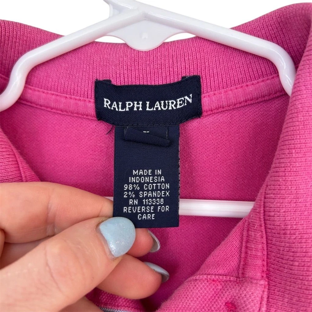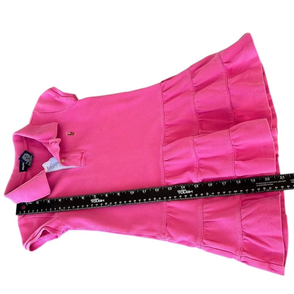 Brighten up your little one's wardrobe with this charming Ralph Lauren polo dress in a delightful pink hue. Perfect for casual outings or classic-themed gatherings, this short dress features a playful tiered skirt and a signature embroidered logo, adding a touch of elegance to everyday wear. The collared neckline and short sleeves make it ideal for warm days, while the cotton-spandex blend ensures comfort and ease of movement. Despite some minor flaws, this dress remains a stylish choice for any casual occasion. Few stains noted please review photos. Fading present Keywords: Ralph Lauren, polo dress, pink dress, girls' dress, casual wear, classic style, short dress, tiered skirt, embroidered logo, collared neckline, short sleeve, cotton dress, spandex blend, size 5, girls' fashion. Brand: Ralph Lauren Style: Polo Dress Color: Pink Dress length: Short Department: Girls Size: 5 Theme: Casual, Classic Sleeve length: Short Sleeve Occasion: Casual Material: Cotton, Spandex Neckline: Collared Country of origin: Indonesia Features: Tiered Skirt, Embroidered Logo Mpn: 113338 Smoke free household. Pet friendly household. Please see pictures for measurements. Feel free to reach out with any questions and we’ll try to answer as best we can.