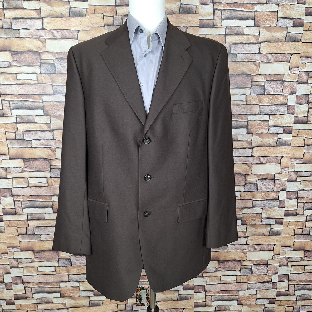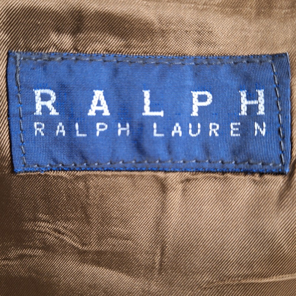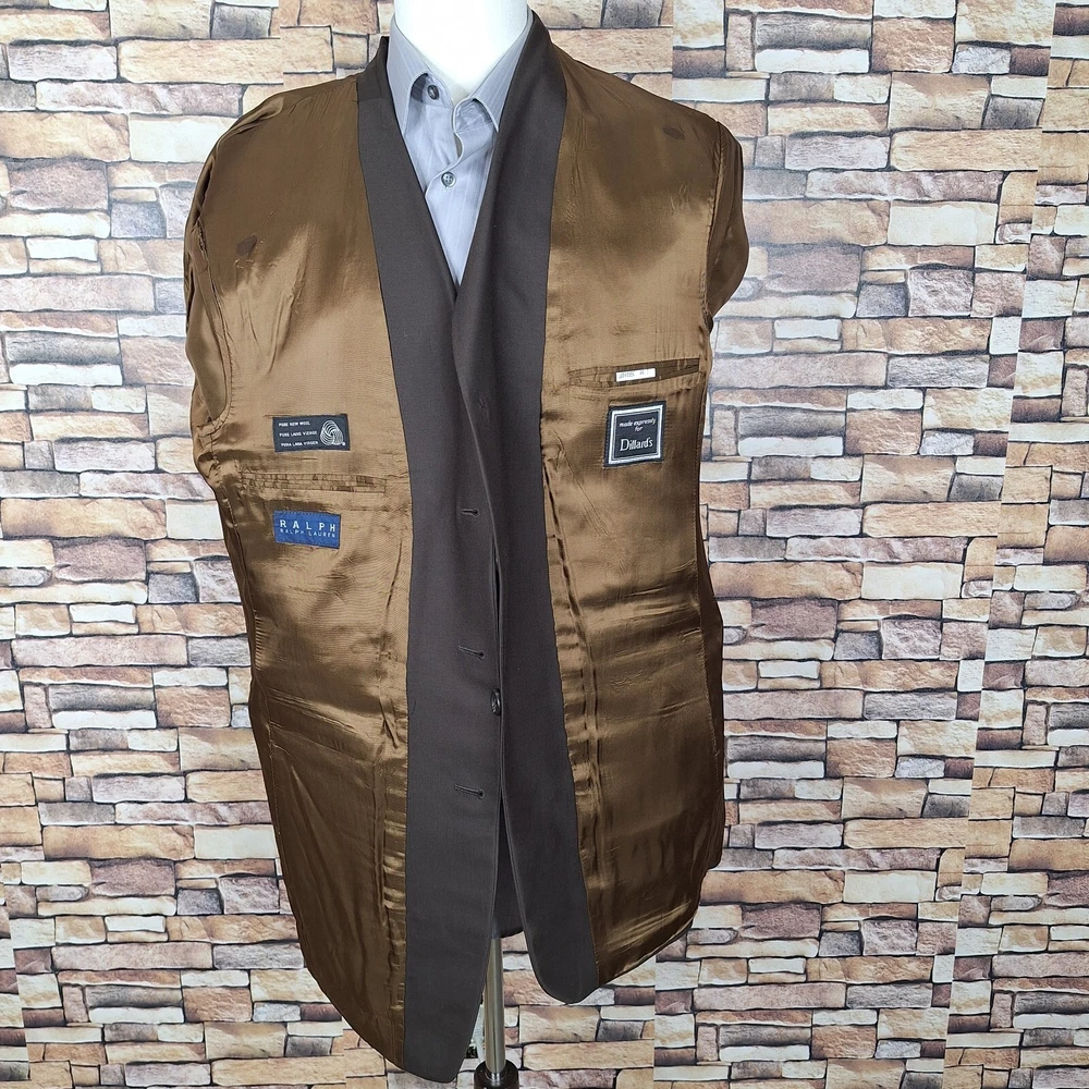 Theme: Classic, Designer, Elegant, Modern, Preppy, Wedding Vintage: Yes Size Type: Regular Style: Blazer Pattern: Solid Jacket/Coat Length: Long Fit: Regular Features: Inner Pockets Jacket Front Button Style: Three-Button Color: Brown Department: Men Inseam: NA Personalize: No Occasion: Business, Casual, Formal, Party/Cocktail, Travel, Wedding gtin13: Does not apply Season: Fall, Spring, Summer, Winter Brand: Ralph Lauren Waist Size: NA Seller Notes: “Quality used condition. Please check out the measurements before buying to ensure a perfect fit” Jacket Sleeve Button Style: Four-Button Leg Style: NA UPC: Does not apply Jacket Vent Style: Ventless Handmade: No Jacket Lapel Style: Notch Jacket Cut: Single-Breasted Material: Wool Chest Size: 44 Size: 44 Country/Region of Manufacture: Canada Garment Care: Dry Clean Only Type: Blazer