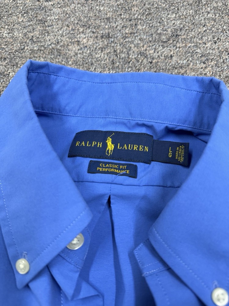 Ralph Lauren Men's Blue Long Sleeve Dress Shirt Size Large. Great condition, little to no signs of wear. 51% polyester 49% Nylon. Measurements in photos. Ships 1-2 days.