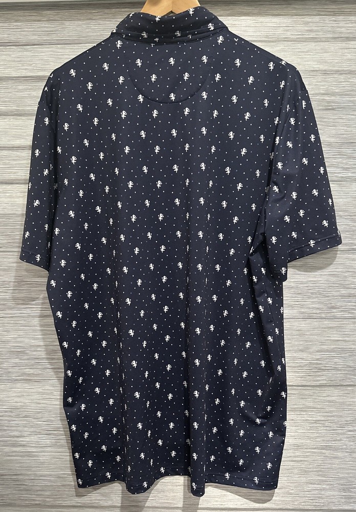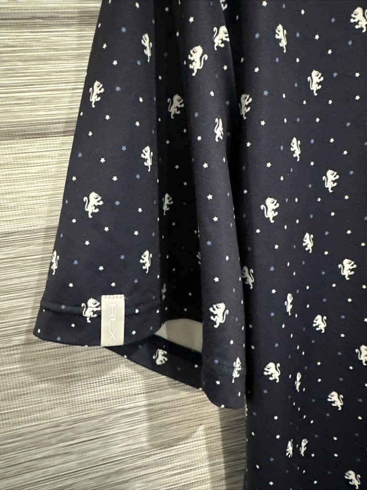 This Polo Ralph Lauren polo shirt is a must-have for any stylish man's wardrobe. The navy color and animal print pattern make it a versatile piece that can be dressed up or down. The short sleeves and UV protection feature make it perfect for any outdoor activity. Made of 93% cotton and 7% elastane, this shirt is comfortable and durable. The size L fits regular size men and the shirt is modified to meet the highest quality standards. The button-up design and features such as UV protection make it a great choice for any occasion. This shirt is perfect for men who want to look good and feel comfortable.