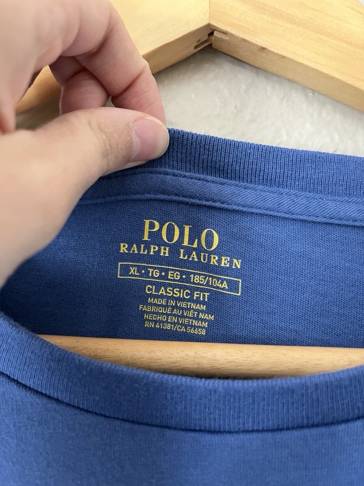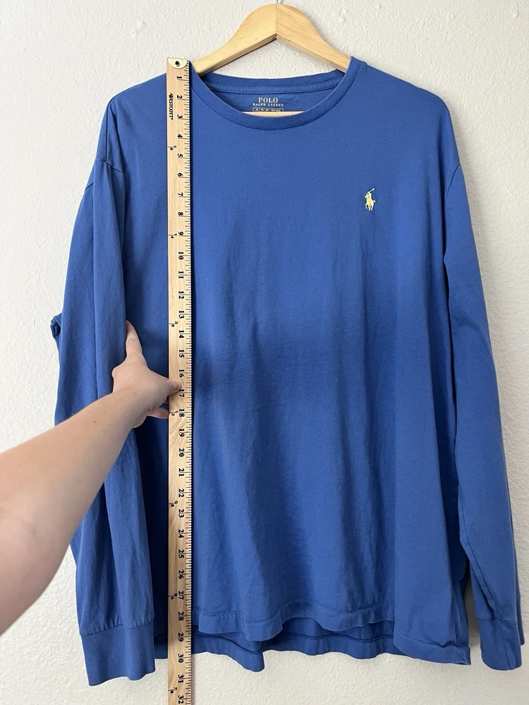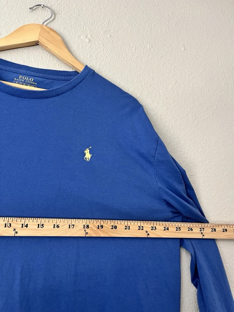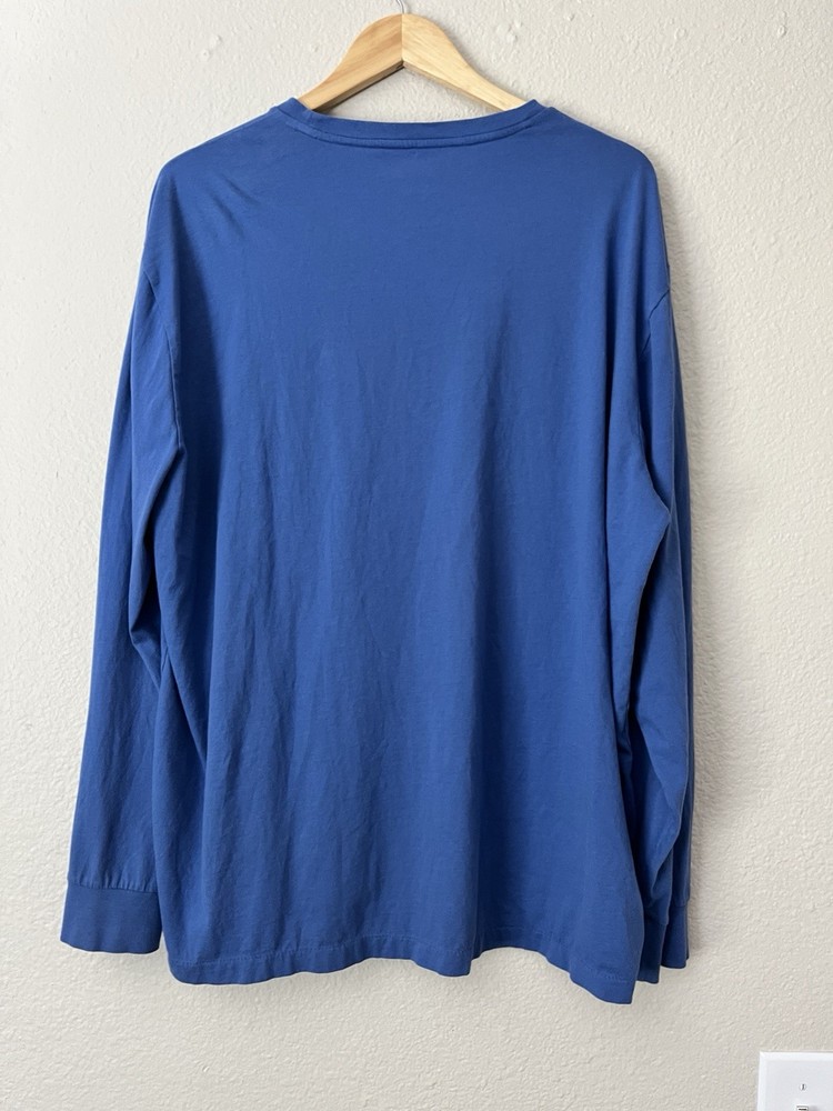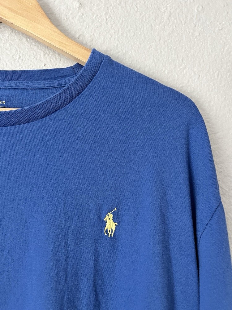 Polo Ralph Lauren long sleeve t-shirt, blue with yellow stitched pony logo, men’s size XL, 100% cotton, crew neck
