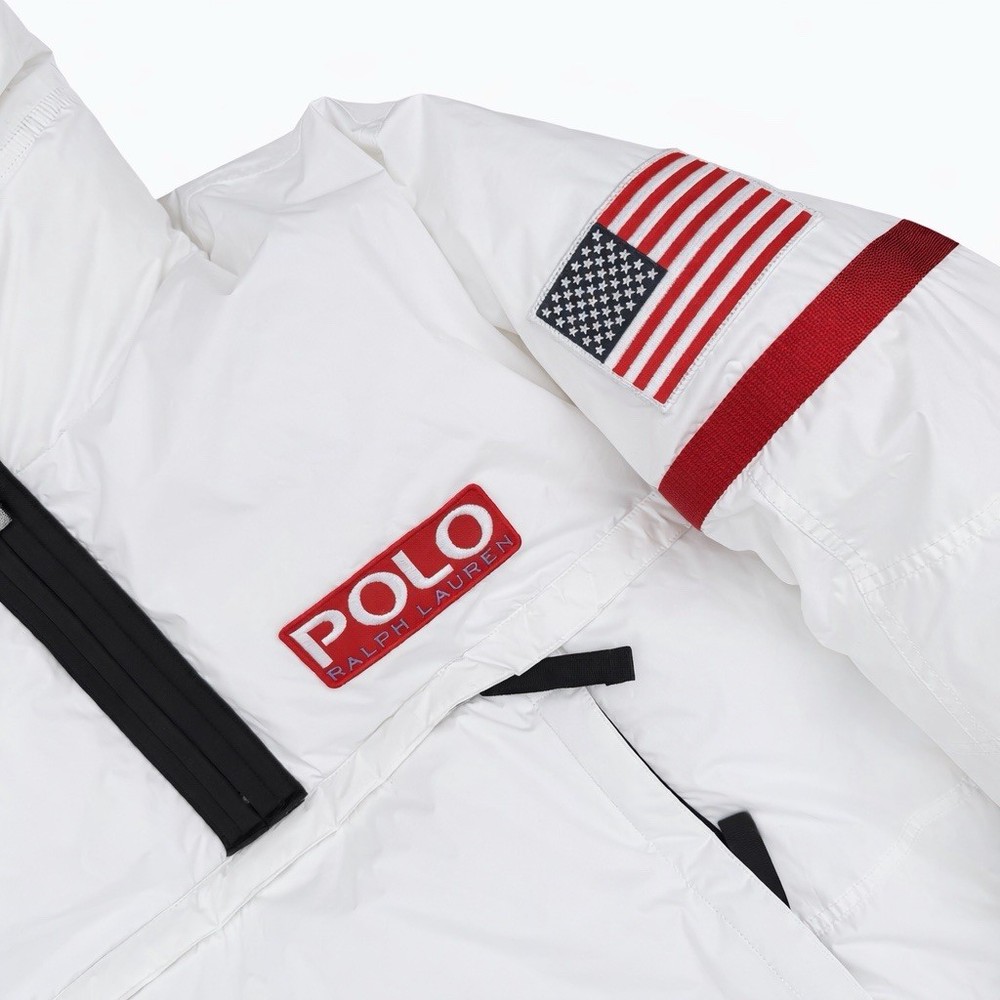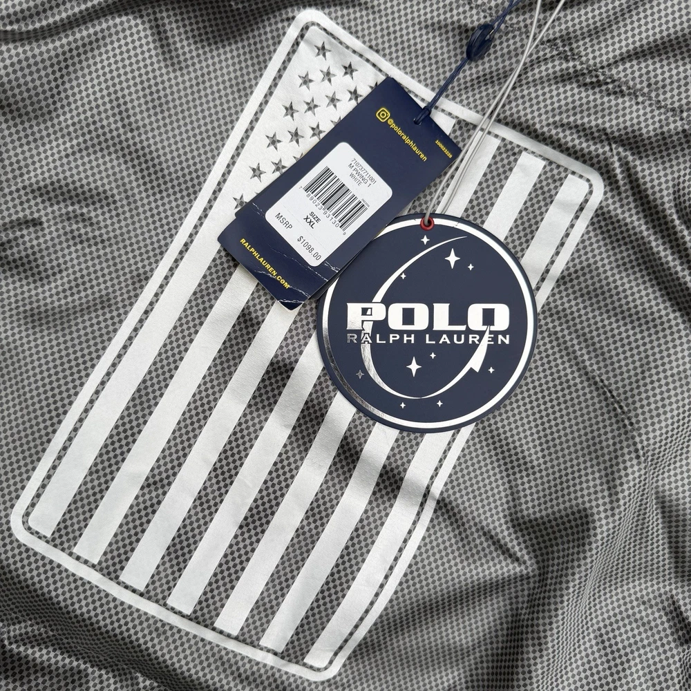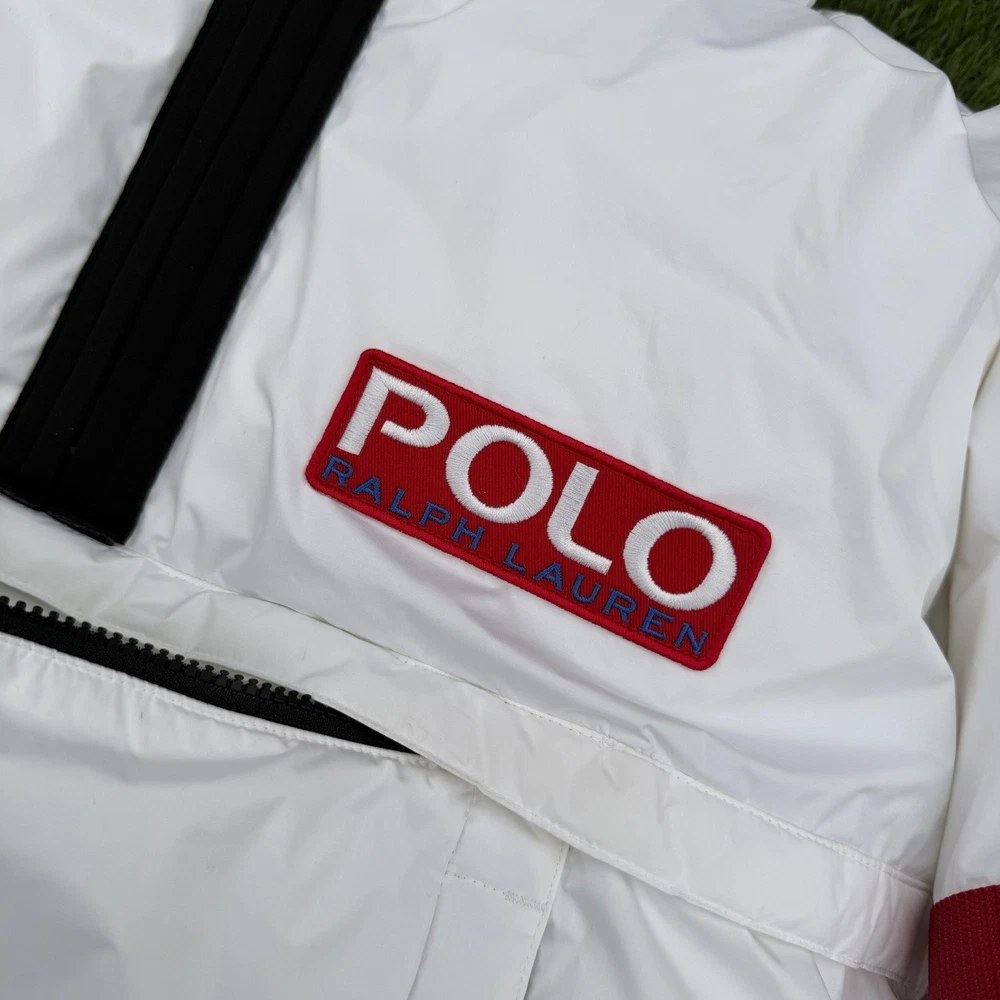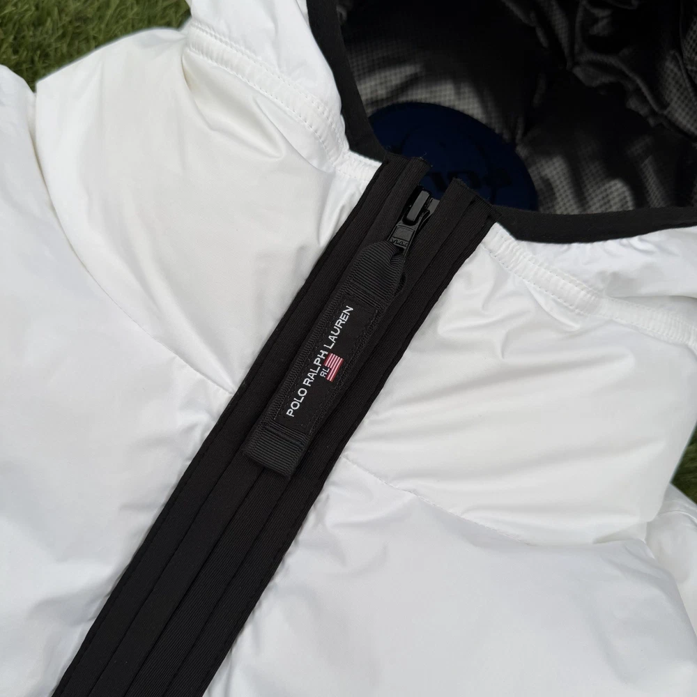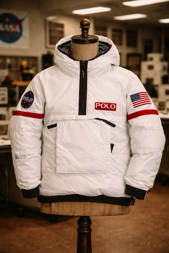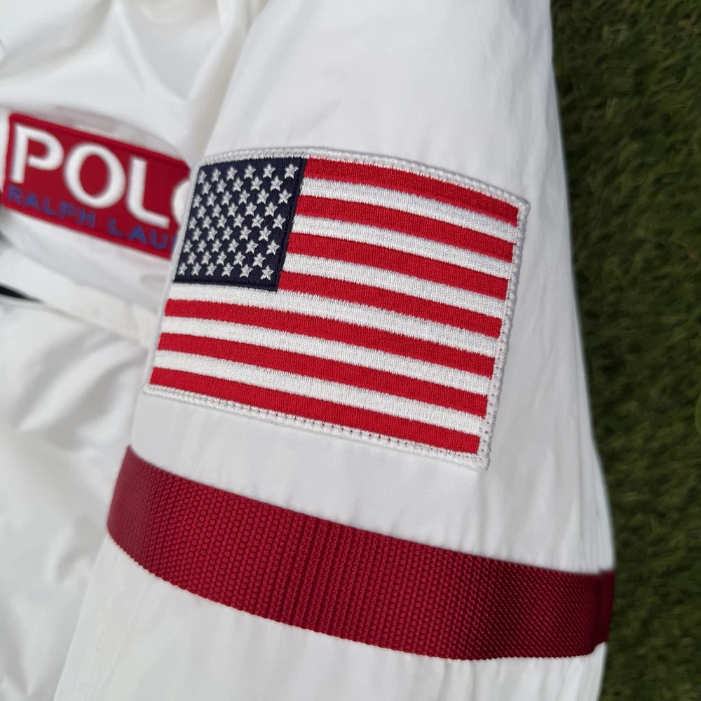 A rare, limited-edition Polo 11 RL Heat jacket, directly inspired by one of Ralph Lauren’s most iconic 1990s designs, combining classic Polo aesthetics with advanced wearable technology. This jacket features RL Heat, Polo Ralph Lauren’s proprietary onboard heating system, using ultra-light, fully flexible carbon and silver ink technology to deliver up to 11 hours of adjustable warmth. Heat levels are controlled in real time via the exclusive RL Heat app (available on iOS and Android) and powered by a Polo-branded Mophie battery, which is included. Filled with ethically sourced 750-fill-power down for natural insulation and finished with a water-repellent ripstop shell, this piece is both functional and collectible. ⸻ Condition • Pre-Owned with original tags • Includes one original Polo-branded Mophie battery pack Details & Features • Limited-edition Polo 11 RL Heat model • RL Heat app–controlled warming system • Up to 11 hours of heat • Water- and wind-repellent • Hood with fleece-lined collar • Half-zip placket with “Polo Ralph Lauren” zip pulls • Long sleeves with neoprene cuffs • American flag patch at left sleeve • “Polo Ralph Lauren” patches at left chest and right sleeve • Kangaroo pocket with zip closures (sides & top) • Neoprene hem • Zip vent along left side • American flag print at interior • Fully lined and filled ⸻ Materials • Shell: 100% polyester • Lining: 100% nylon • Fill: 90% white duck down, 10% white duck feathers • 750 fill power (high-loft, premium insulation) • Spot clean only ⸻ Size & Measurements (lying flat, approx.) • Size: XXL • Shoulder (seam to seam): 24 in • Chest (pit to pit): 31.5 in • Sleeve (shoulder seam to cuff): 27 in • Back length (collar to hem): 32.5 in ⸻ Notes • Ideal for collectors of Ralph Lauren / Polo / RL Heat pieces • Limited production, no longer available in retail • Please review all photos and measurements carefully