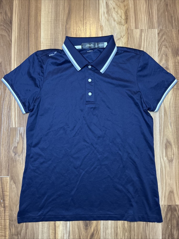 This Ralph Lauren RLX polo shirt is perfect for any active woman who wants to look stylish while playing golf or other sports. The shirt features snap metal buttons, a collared neckline, and short sleeves, making it easy to wear and comfortable. It is made of 54% polyester and 46% cotton, and comes in a beautiful blue color with the Ralph Lauren RLX logo on it. The shirt is tailored to fit perfectly, and is a size S. It is part of the Ralph Lauren RLX Polo Golf product line, and was made in Peru. Whether you're playing in the Olympics or just having a casual day out, this shirt is the perfect choice for any activewear occasion.