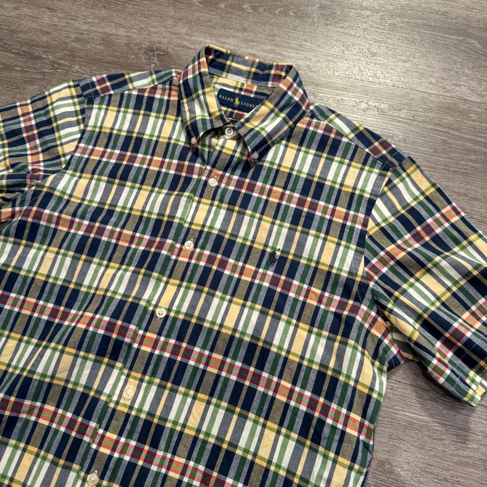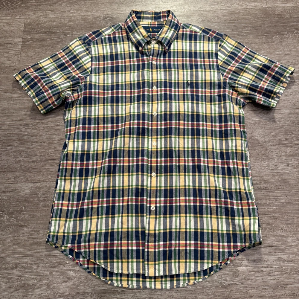 Ralph Lauren Shirt Mens Medium Madras Plaid Indian Short Sleeve Button Cotton