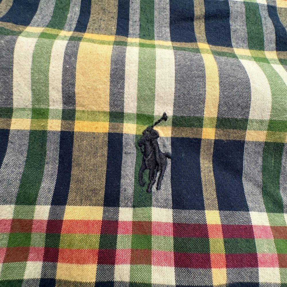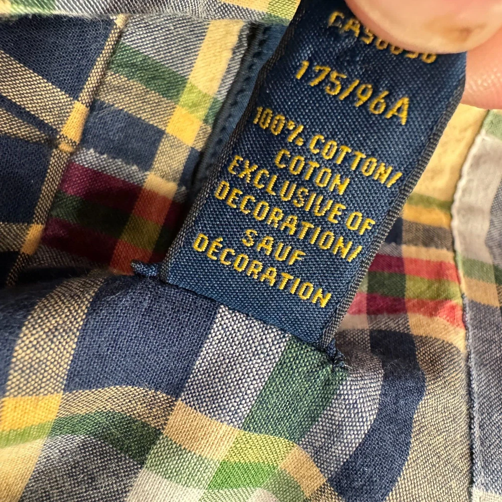 Fabric Type: Knit Color: Multicolor Size Type: Regular Accents: Button, Embroidered Features: Pockets Department: Men Type: Button-Up Fit: Regular Brand: Ralph Lauren Vintage: No Collar Style: Button-Down Closure: Button Country/Region of Manufacture: India Neckline: Collared Theme: Indian Season: Spring, Summer Pattern: Plaid Size: M Sleeve Length: Short Sleeve Material: Cotton Garment Care: Machine Washable Occasion: Casual